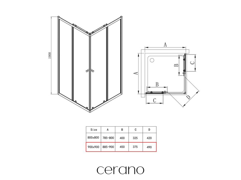 CERANO - Sprchový kout Fabrizio L/P - 5 mm - černá matná, transparentní sklo - 90x90x190 cm - posuvný - ROZBALENO