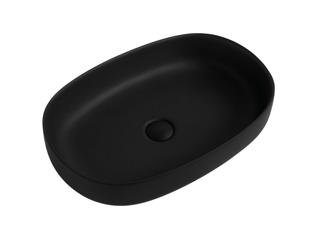 CERANO - Umyvadlo z litého mramoru Atria - na desku - černá matná - 60x40 cm