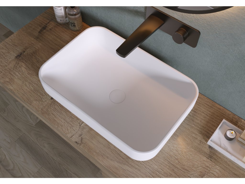 Matný povrch umyvadel světlo neodráží a tak poskytuje klidnější a uvolněnější atmosféru, což dává nenápadný, ale elegantní design. Tento povrch je praktický, protože na něm nejsou tak viditelné otisky prstů a vodní skvrny a následná údržba a udržování čistoty je tak mnohem snažší.