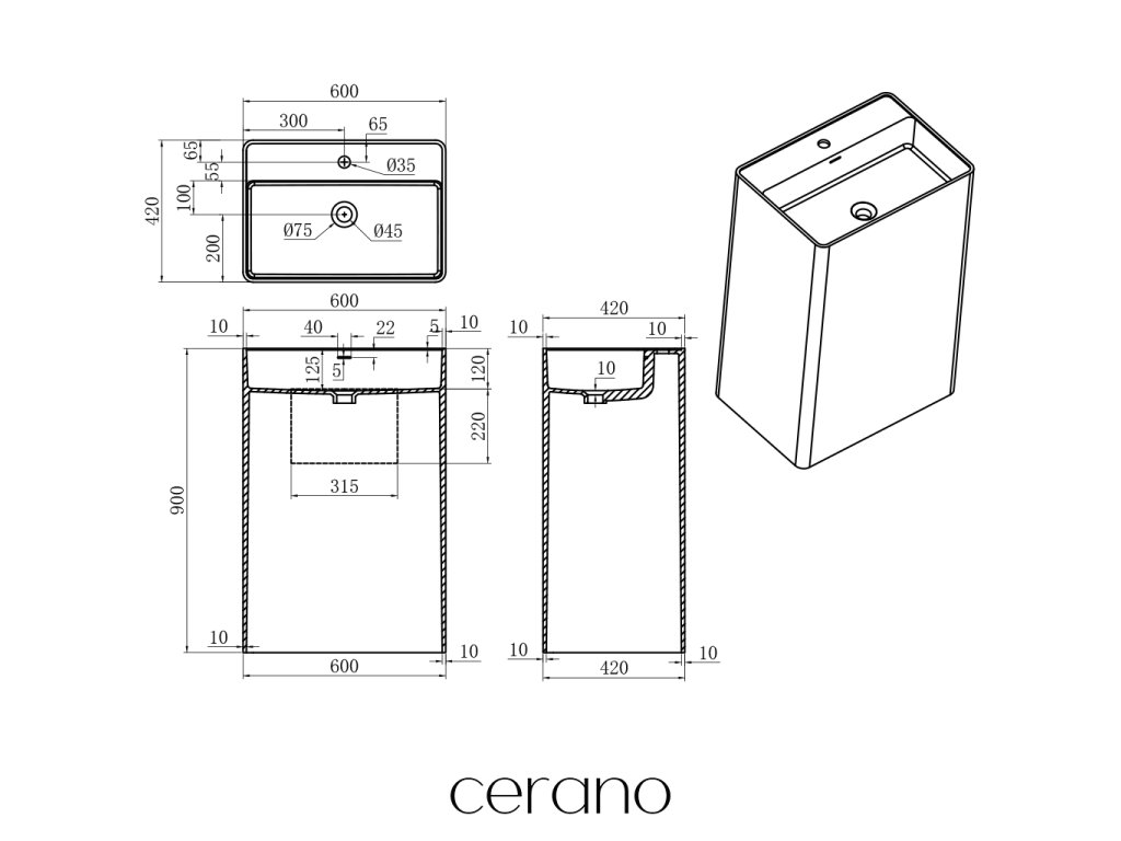 CERANO - Umyvadlo z litého mramoru Trevio - volně stojící - bílá matná - 60x91 cm