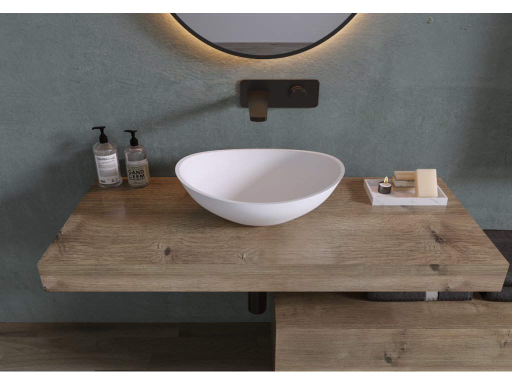 Matný povrch umyvadel světlo neodráží a tak poskytuje klidnější a uvolněnější atmosféru, což dává nenápadný, ale elegantní design. Tento povrch je praktický, protože na něm nejsou tak viditelné otisky prstů a vodní skvrny a následná údržba a udržování čistoty je tak mnohem snažší.