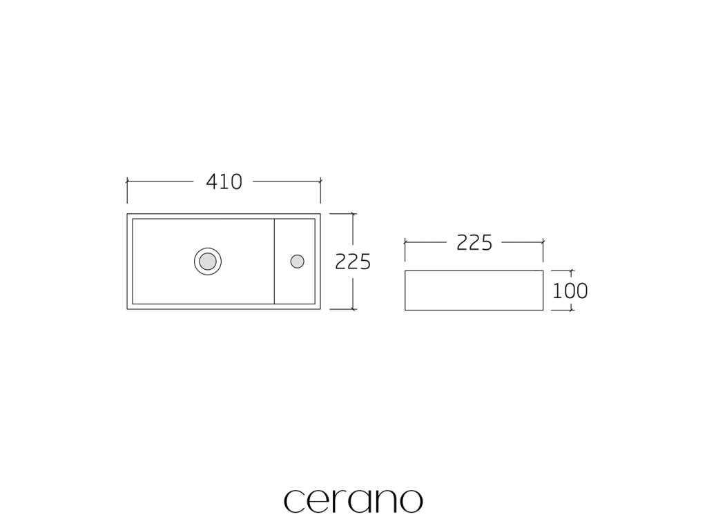 CERANO - Umyvátko keramické Giovanni, závěsné pravé - bílá lesklá - 41x22,5 cm