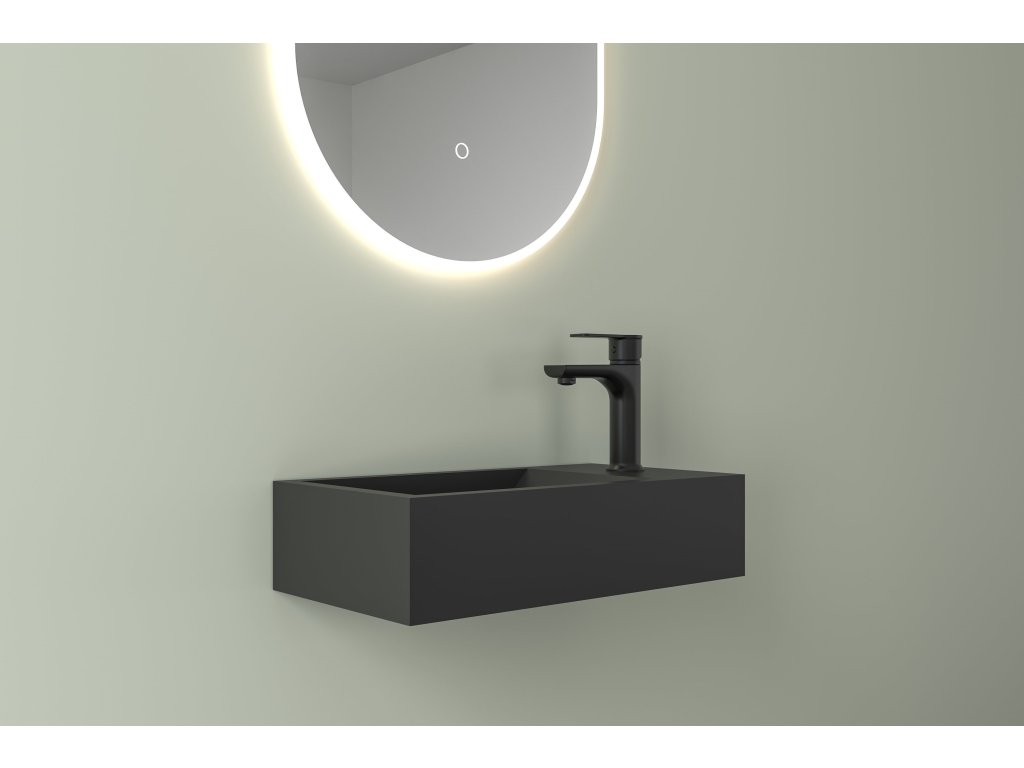 CERANO - Umývátko z litého mramoru Teo - závěsné pravé - černá matná - 40x22 cm