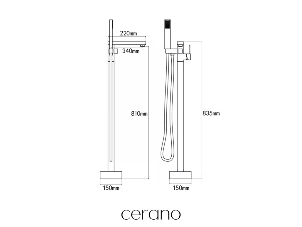 CERANO - Vanová baterie volně stojící Celeste - černá matná