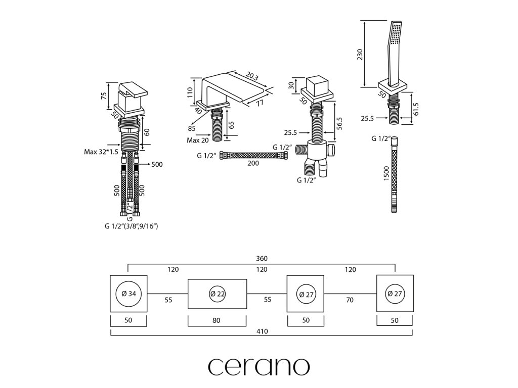 Vanová souprava Vespa značky CERANO se vyznačuje velmi elegantním designem, díky kterému se skvěle hodí do každé moderní koupelny. Je také skvělou volbou pro koupelny zařízené v duchu glamour. Baterie je vyrobená z mosazi, což je velmi kvalitní materiál zabraňující korozi a zajišťující dlouhou životnost a funkčnost celé soupravy.