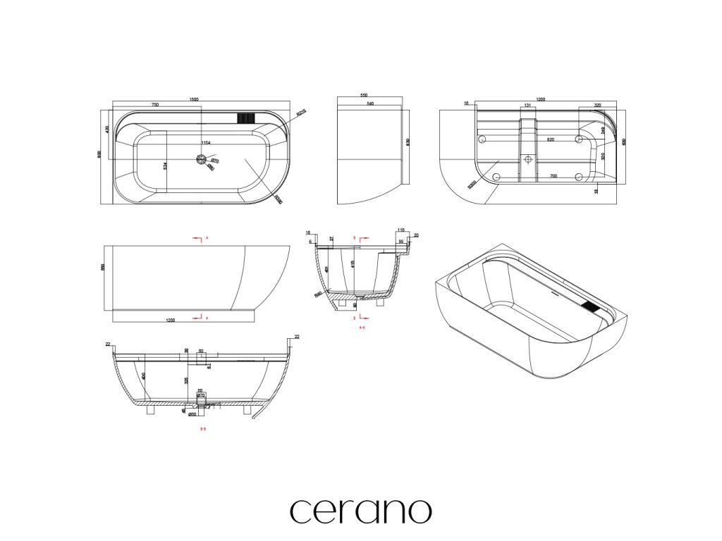 CERANO - Volně stojící vana z litého mramoru Valeria, levá - bílá matná - 150x80 cm