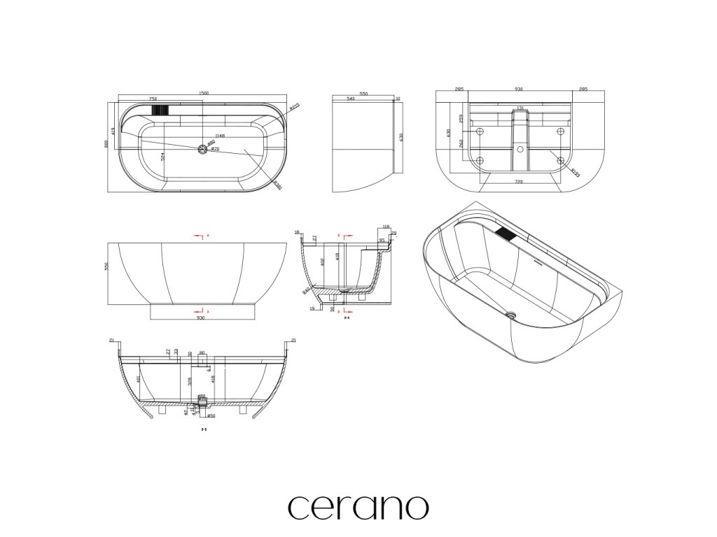 CERANO - Volně stojící vana z litého mramoru Valeria - bílá matná - 150x80 cm
