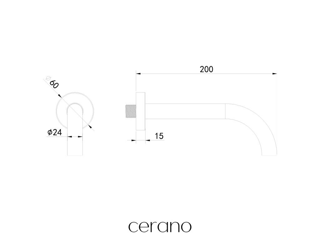 CERANO - Výtoková nástěnná hubice - 20 cm - kulatá - černá matná