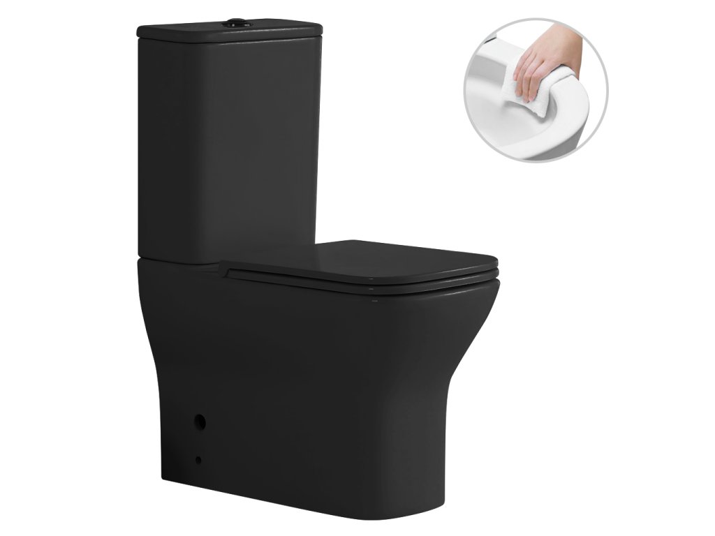 CERANO - WC kombi Hugo, Rimless + Slim/UF sedátko - spodní/zadní odpad - černá matná - 63,5x35,5 cm