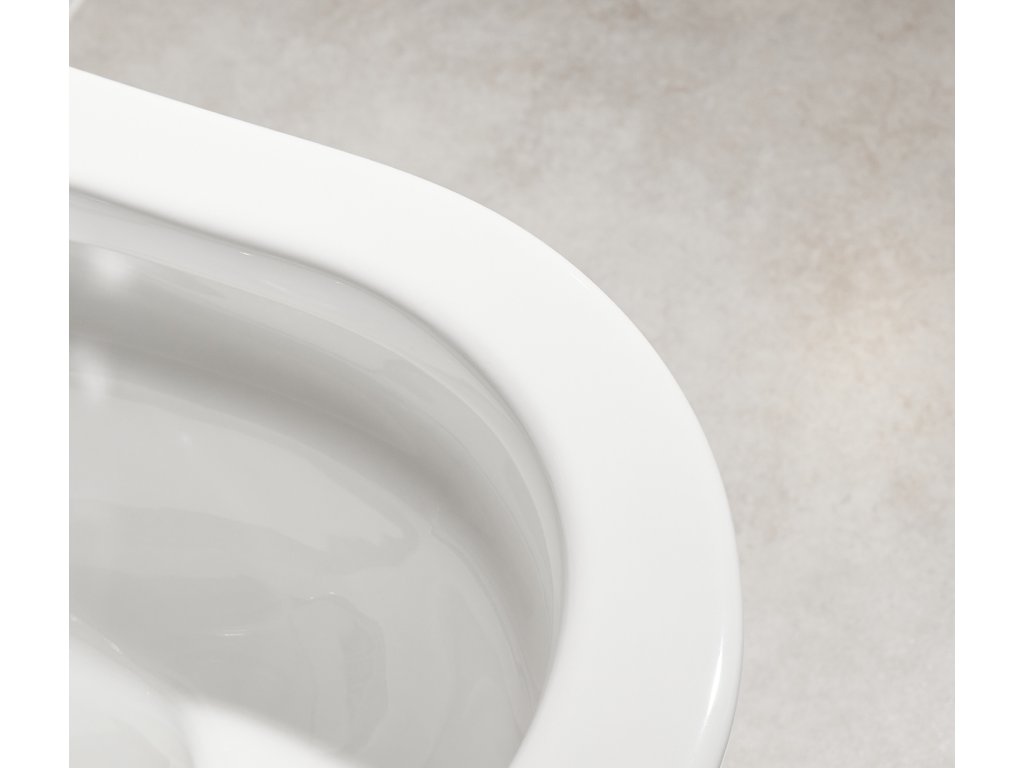 WC mísa je navržena bez tradičního okraje (rimu), který obvykle skrývá těžko přístupná místa. Tento bezokrajový design umožňuje vodě proudit rovnoměrně po celé vnitřní ploše mísy při splachování. Výsledkem je důkladnější a hygieničtější oplach s menším rizikem usazování nečistot a bakterií. Snadnější údržba a lepší čistota jsou hlavní výhody této technologie.