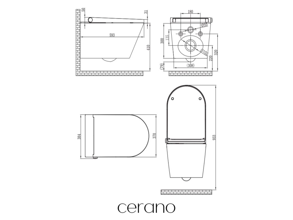 Závěsné WC mísy Cerano se snadno montují díky svým univerzálním rozměrům. Jsou kompatibilní k systémům od známých značek jako Cerano,Geberit, Grohe a Schwab. Díky tomu může být naše WC bez obtíží instalováno do většiny stávajících instalačních rámů, které jsou na trhu.