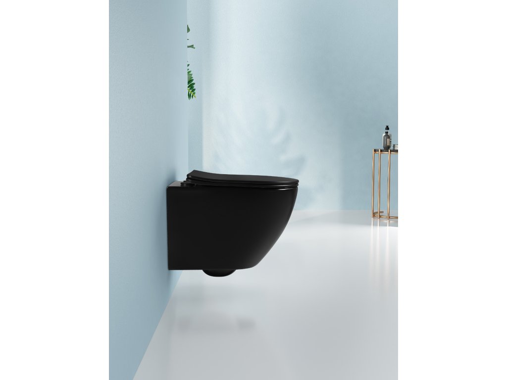 CERANO - WC závěsné Verde, Rimless + Slim/UF sedátko - černá lesklá - 49x36 cm