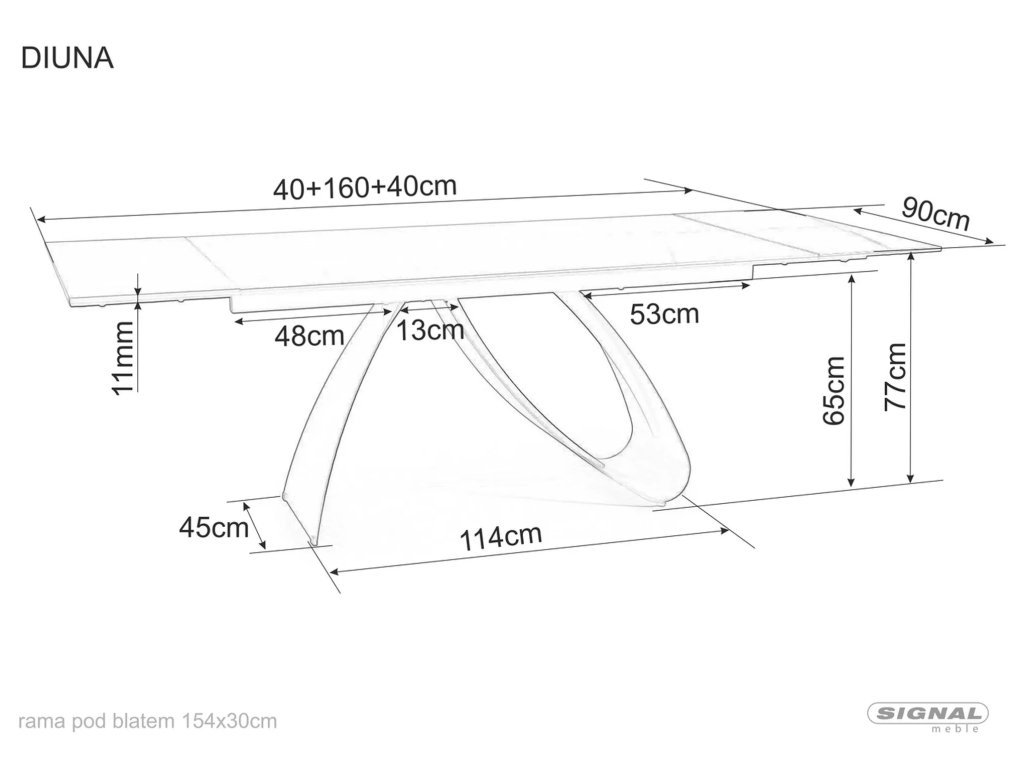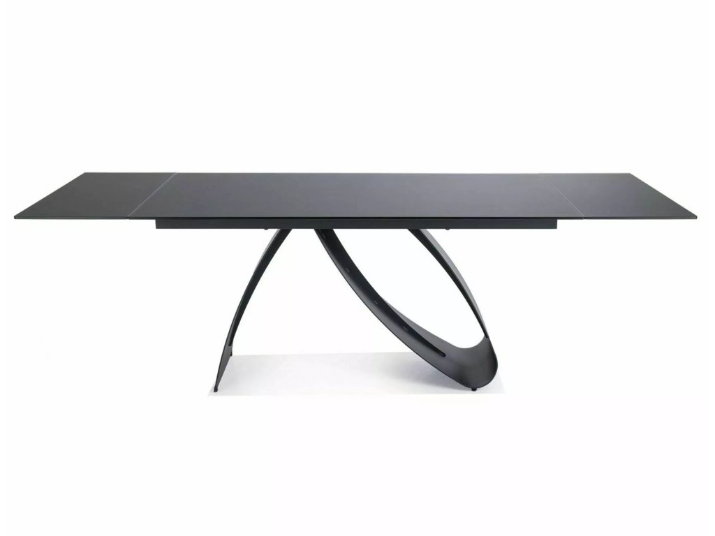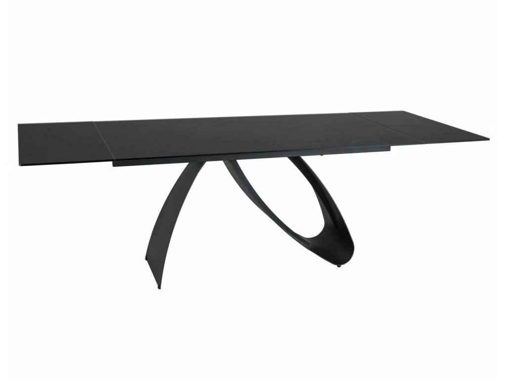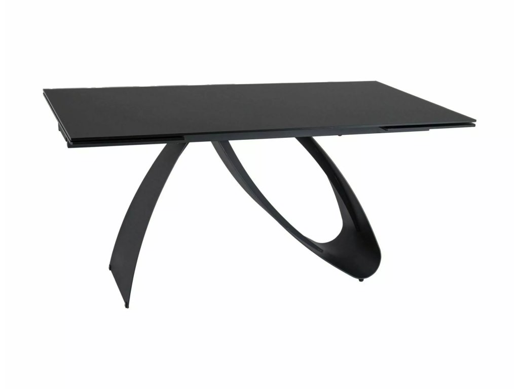 Rozkládací stůl, deska: tvrzené sklo, rám: kov, barva: matná černá.