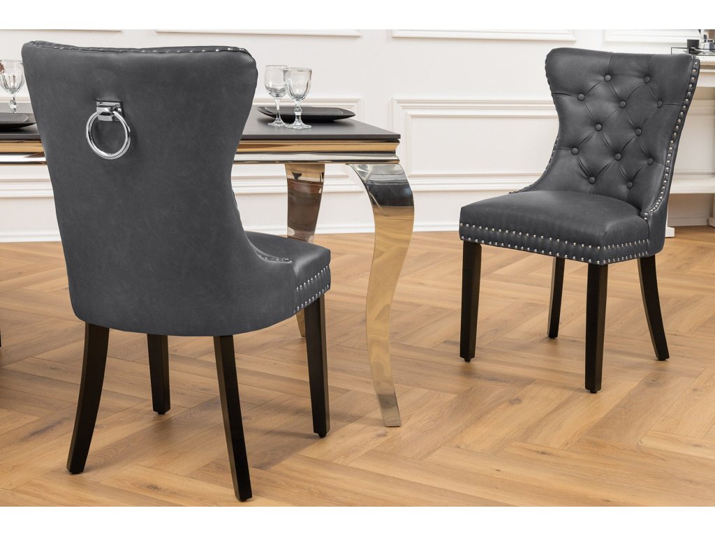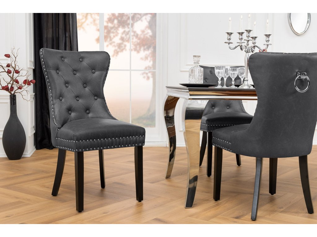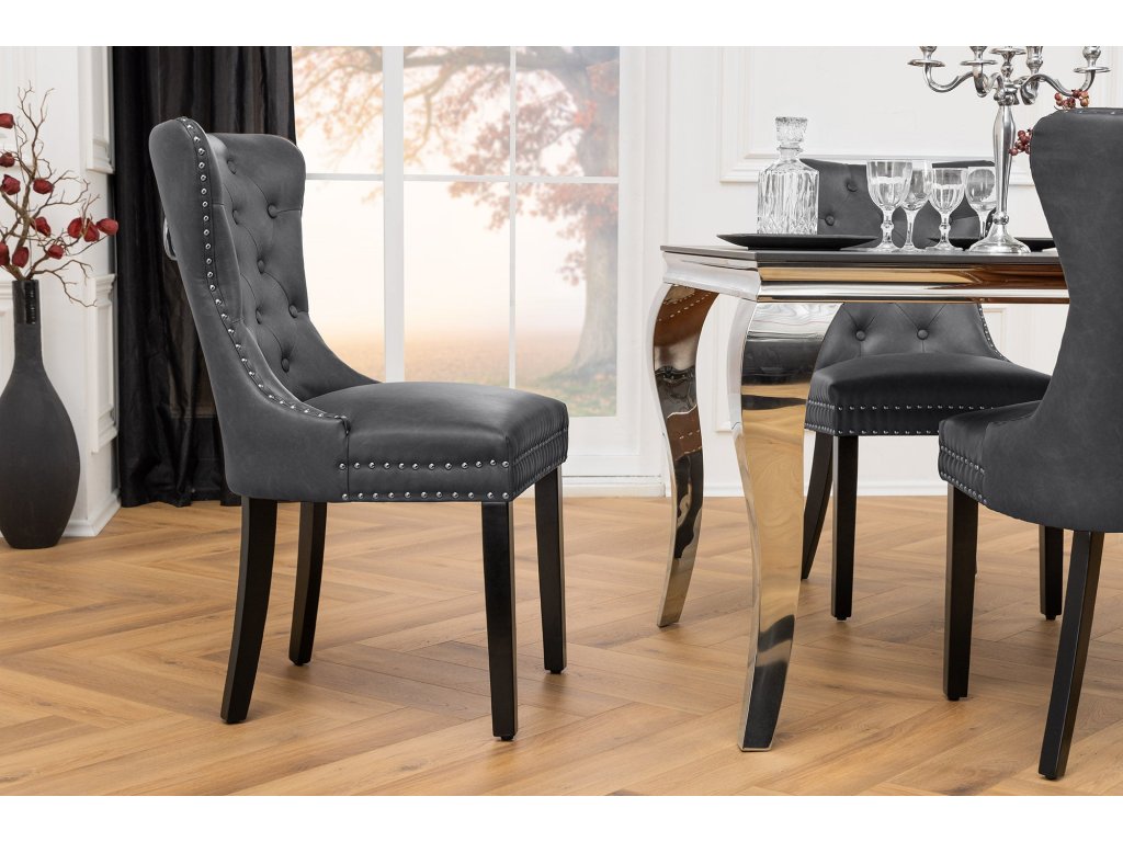 Židle CASTLE s pohodlnou rukojetí, umělá kůže, vintage černá, barokní styl