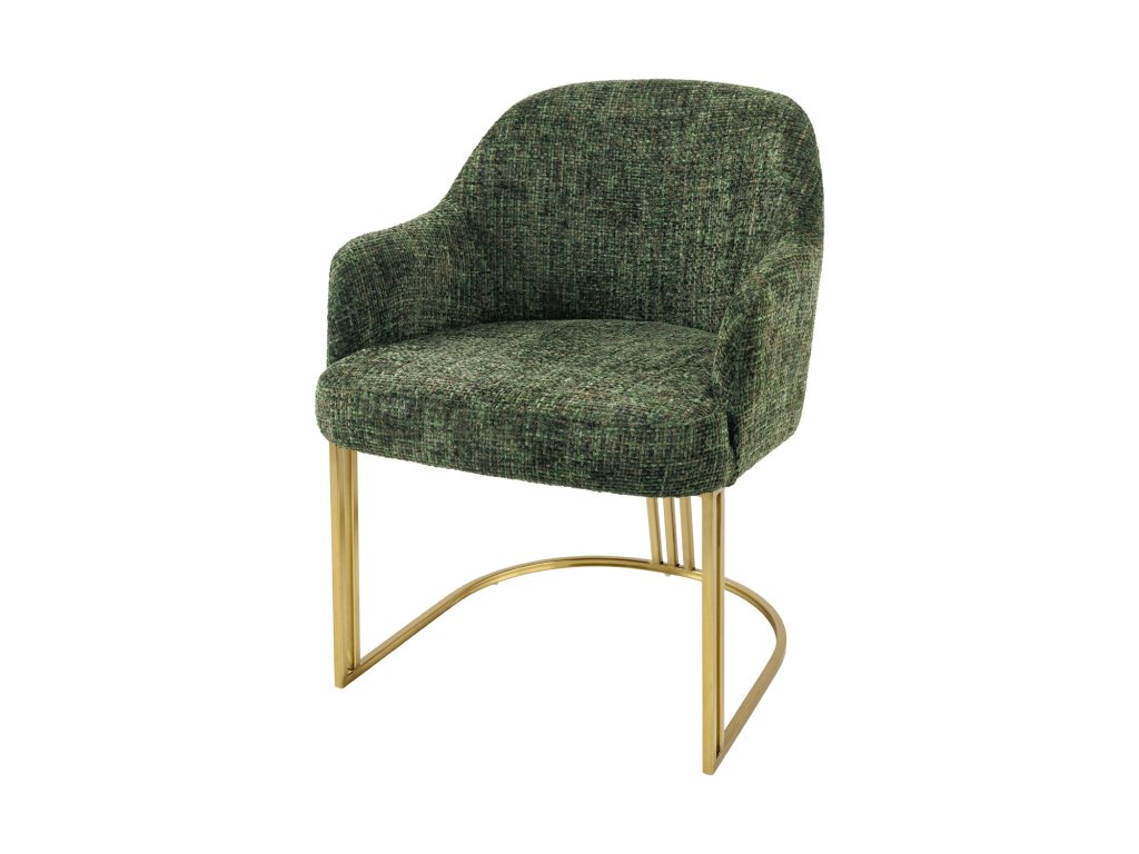 Židle EXTRAVAGANCIA tmavě zelená žinylková látka kartáčovaná s područkami a zlatým rámem