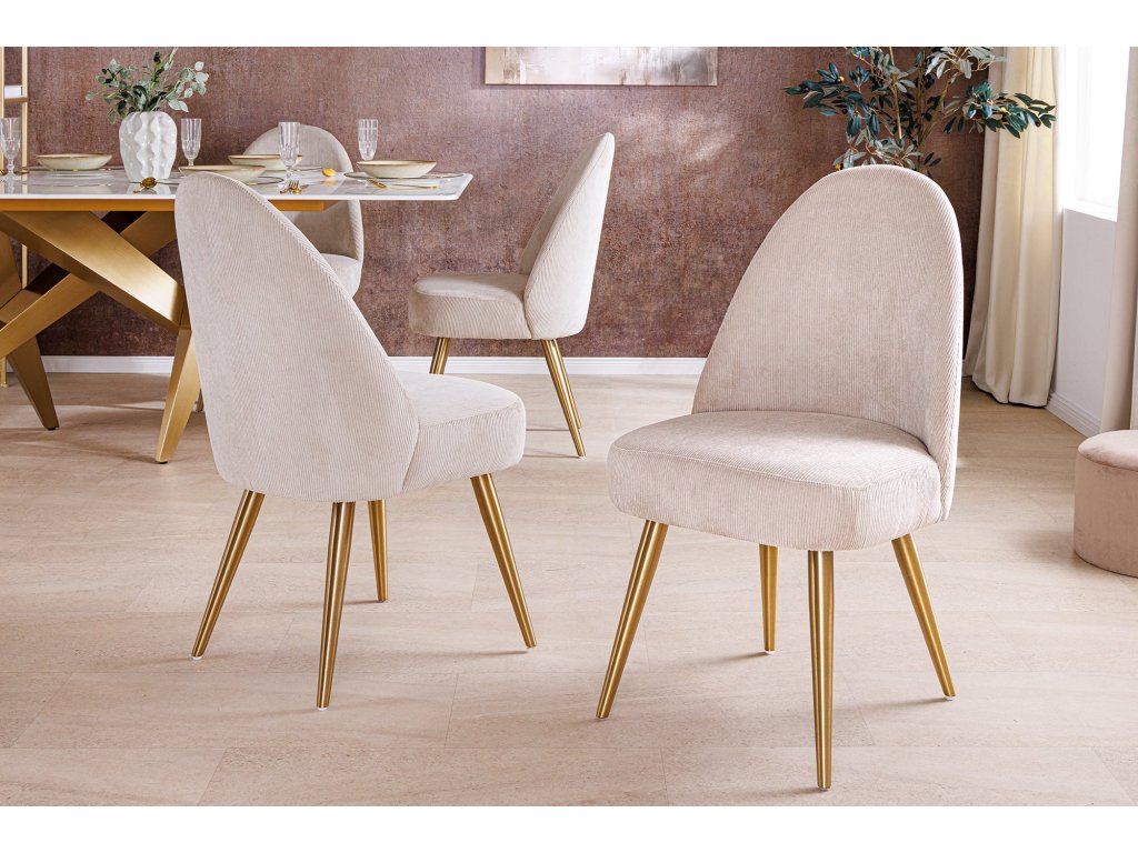Židle MIA CASA kord béžová kovové nohy šampaňské zlatá