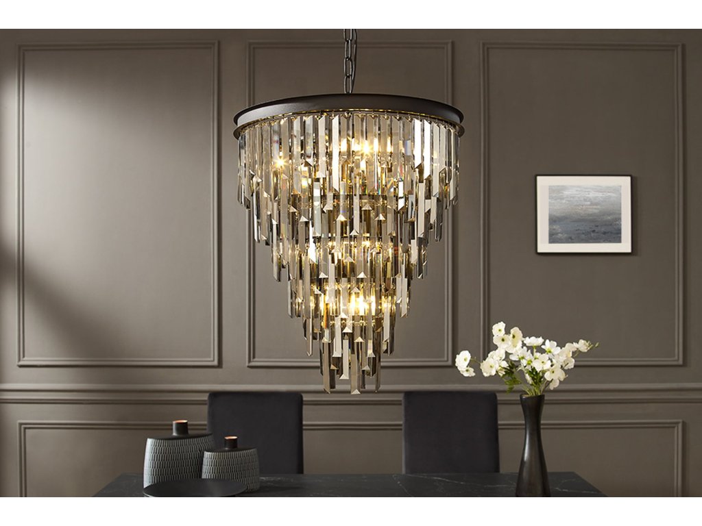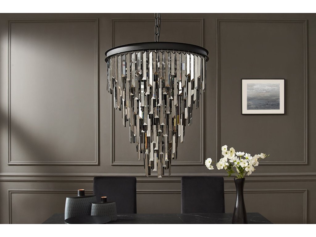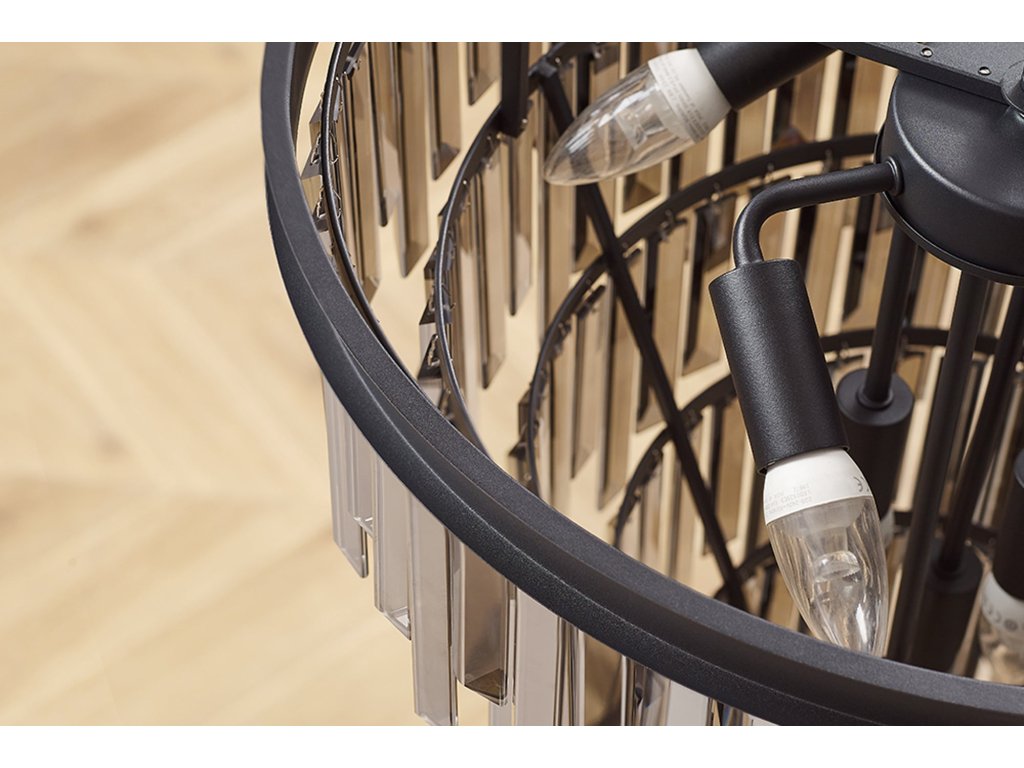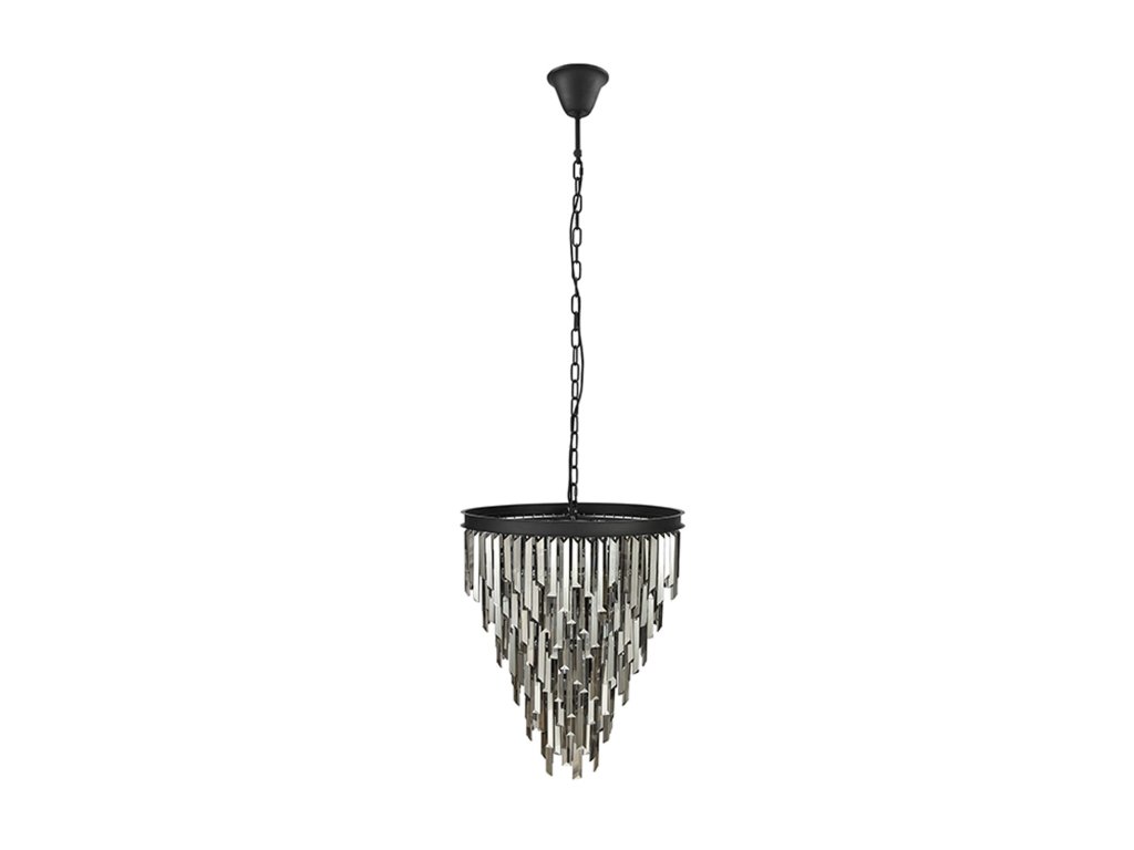 Lustr CRYSTAL 50cm železný černý skleněný hranol šedý