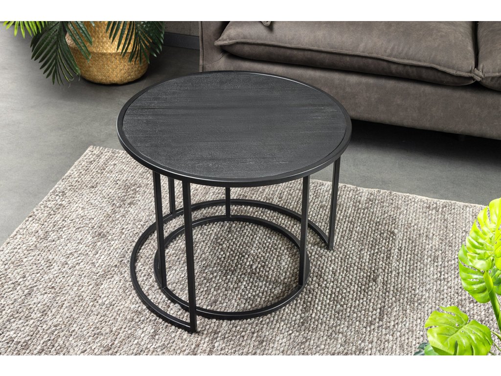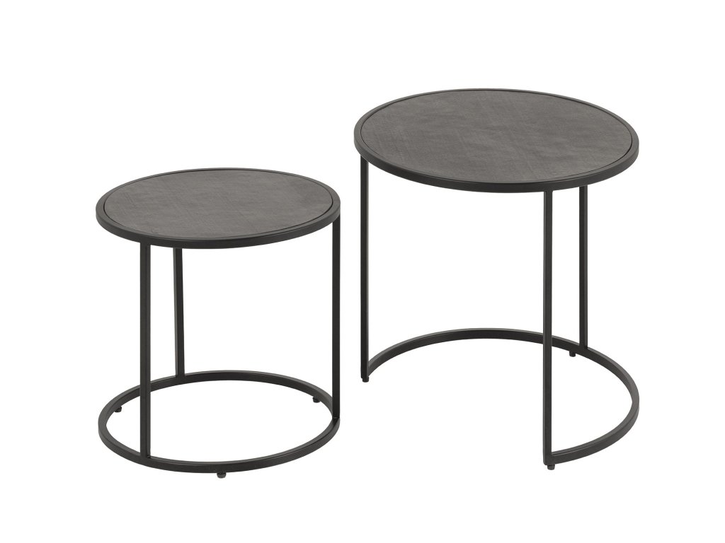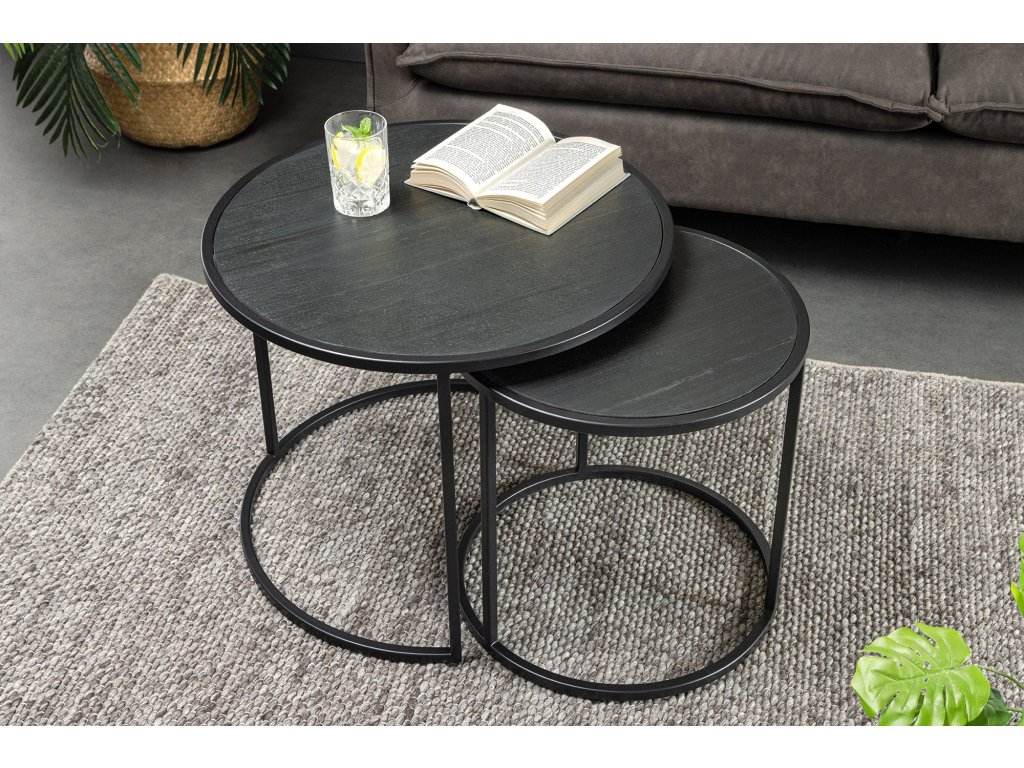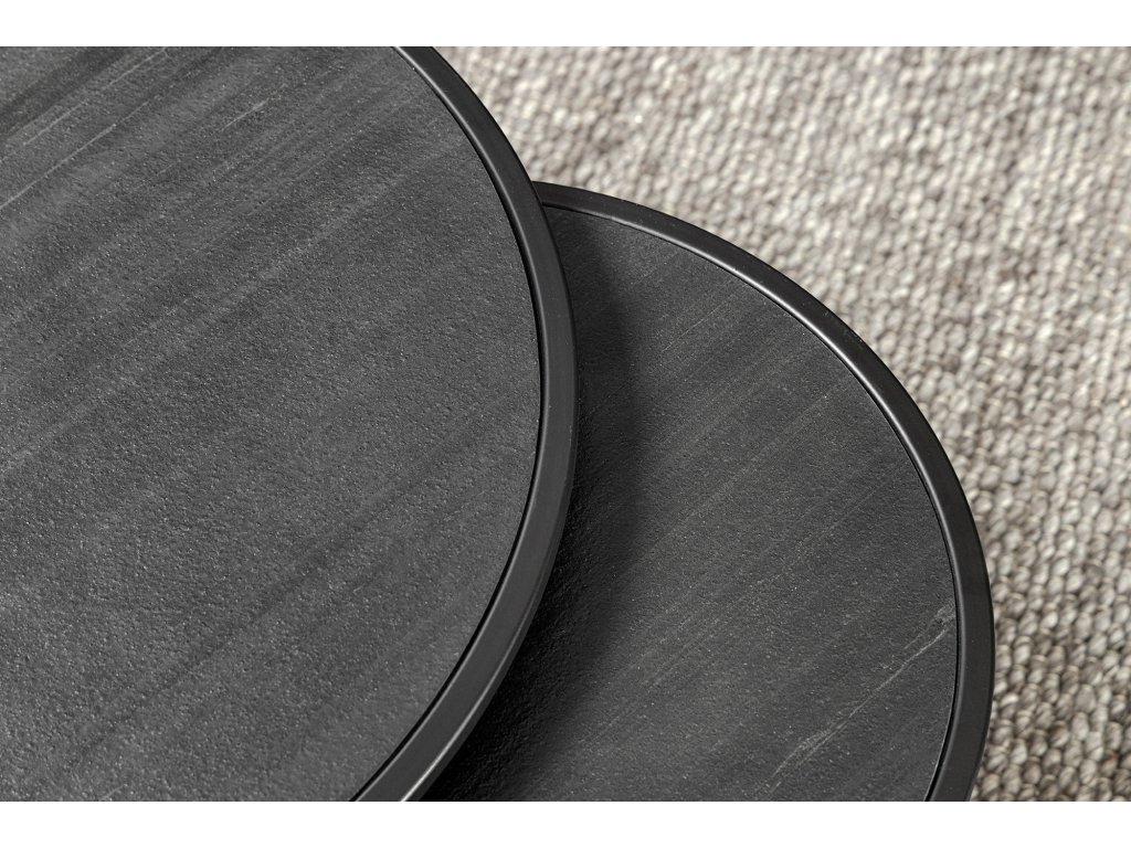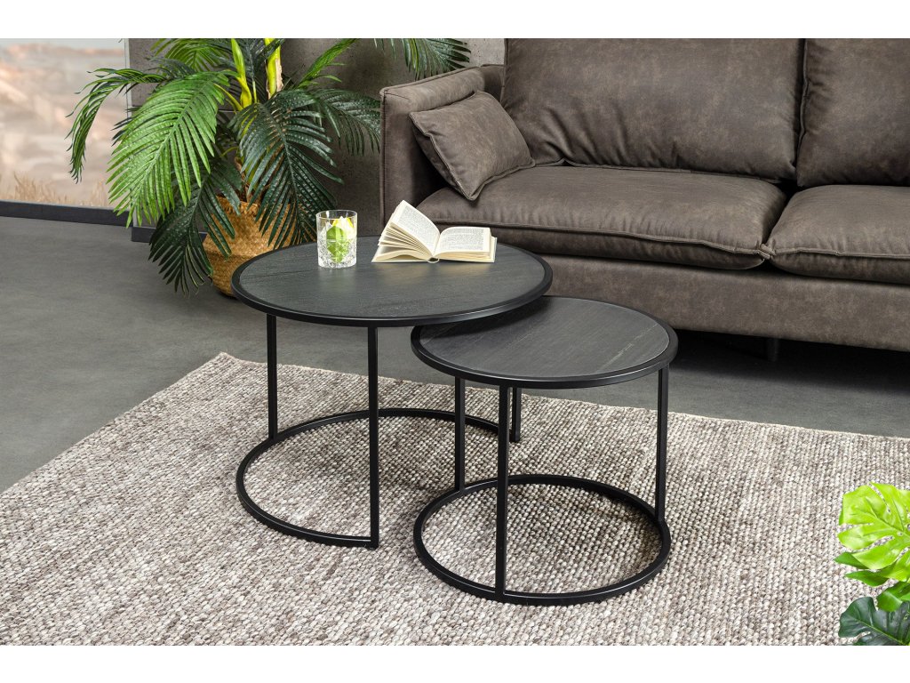 Konferenční stolek MOUNTAIN SOUL 60/45cm kulatý, sada 2 kusů, mramorový vzhled, černý