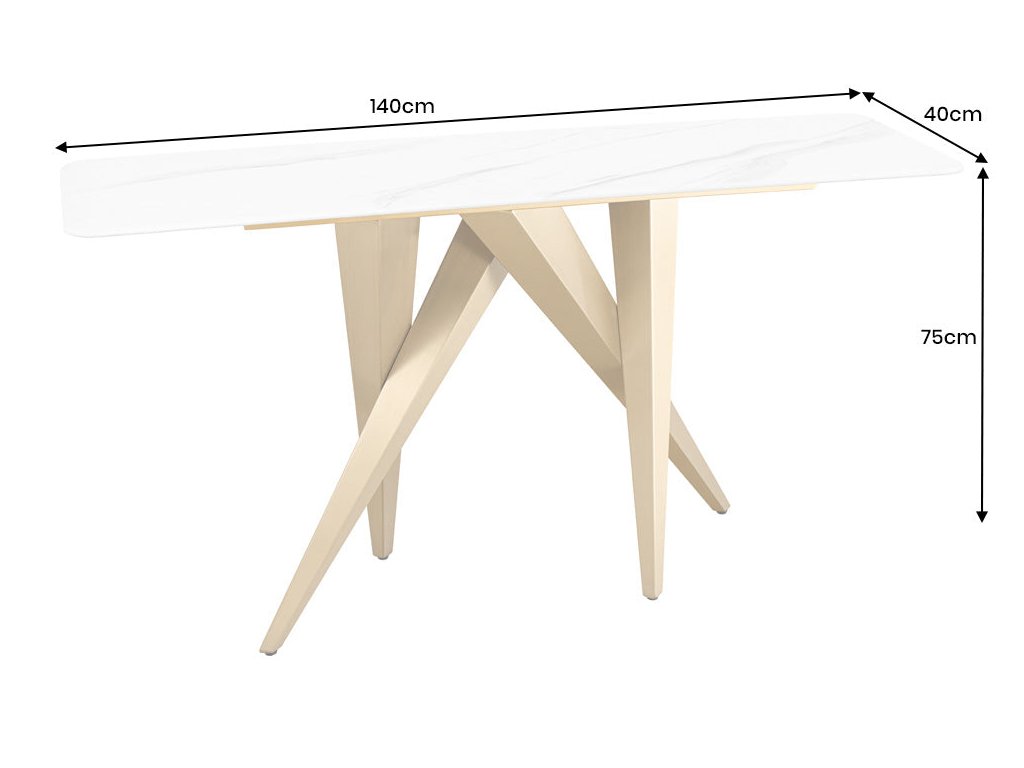 Konzole ART LIVING 140cm keramická bílá mramorová deska s rámem v barvě šampaňského zlata