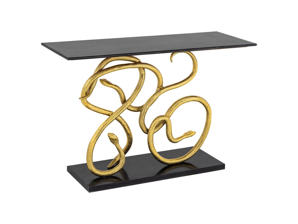 Konzola WILDLIFE SNAKE 115cm zlatý rám s černou mramorovou základnou a vrchní deskou