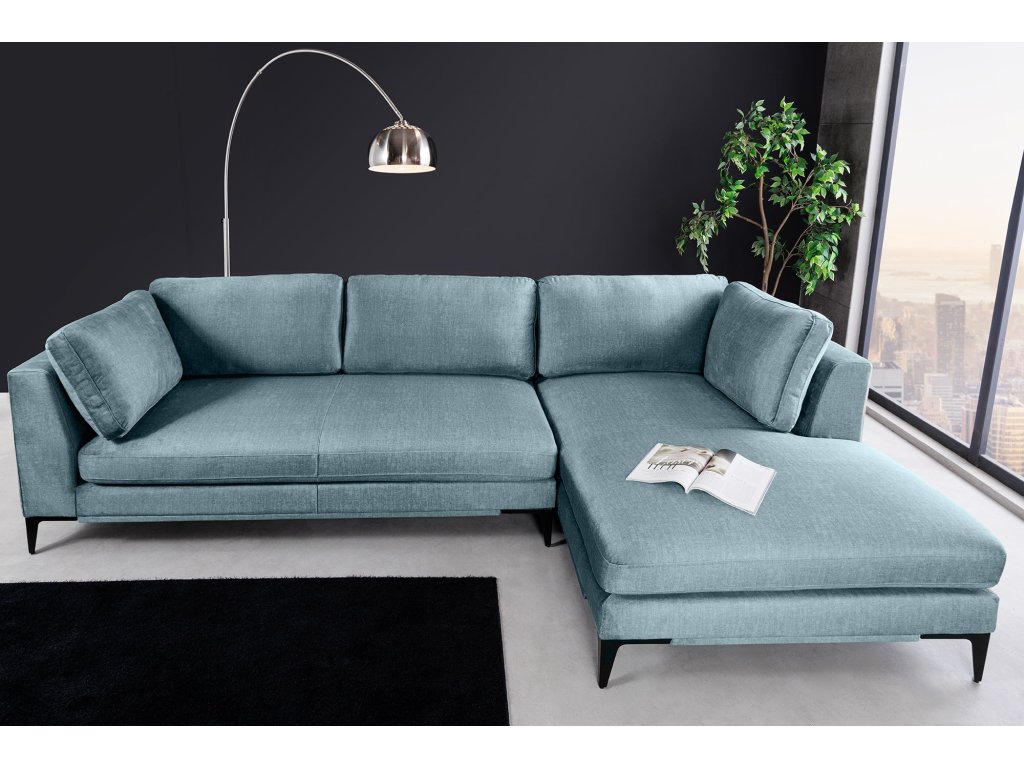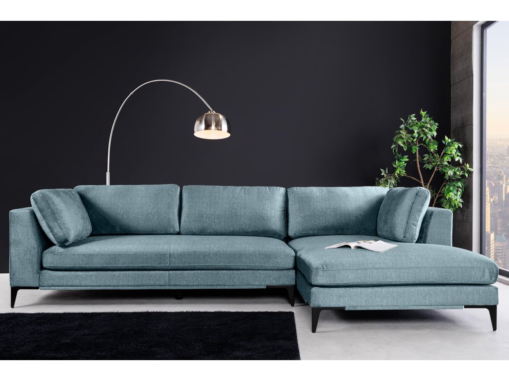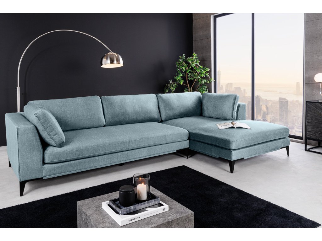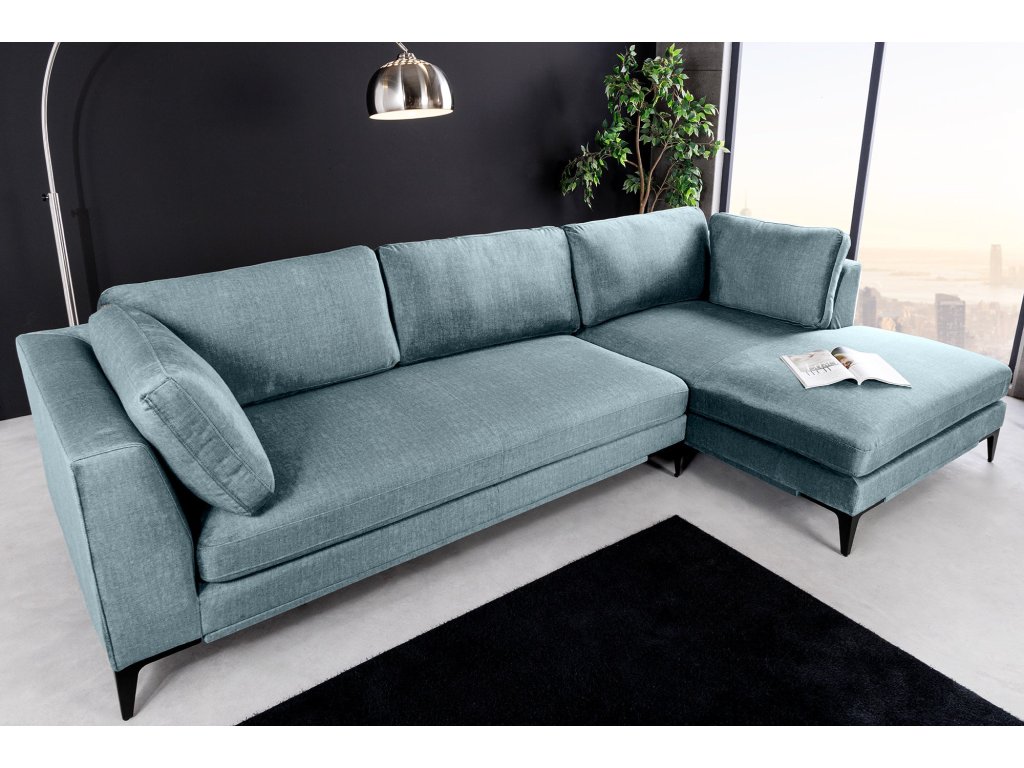 Rohová pohovka SIGNUM 315 cm 3místná s taburetem pravá sametová tyrkysová