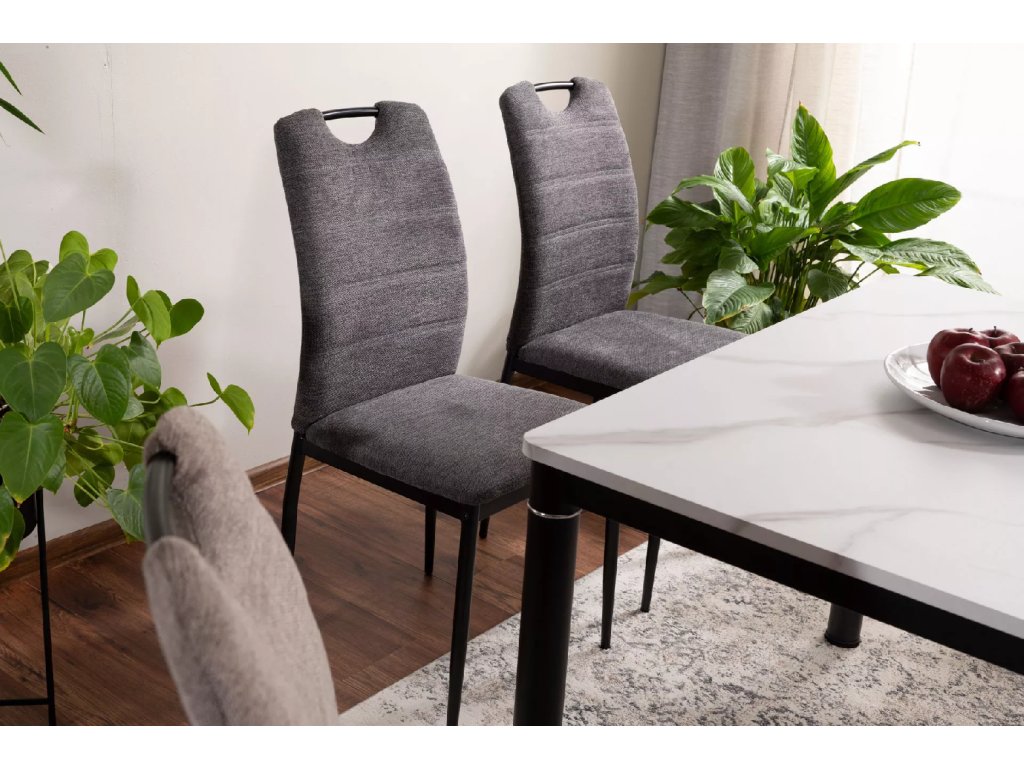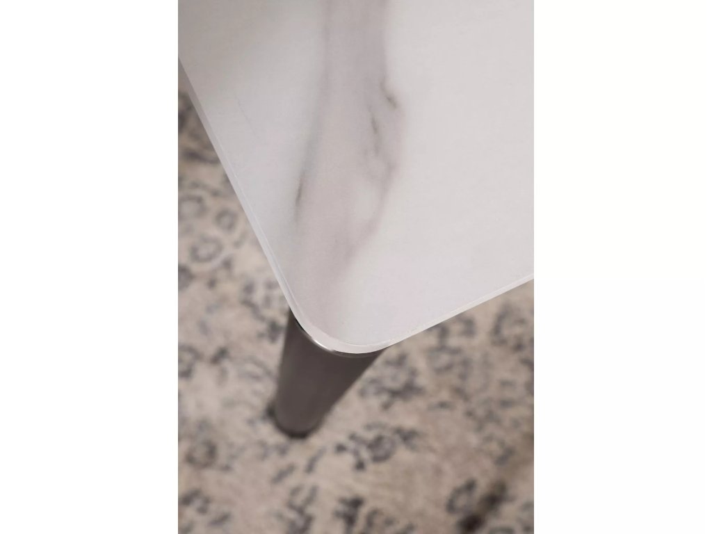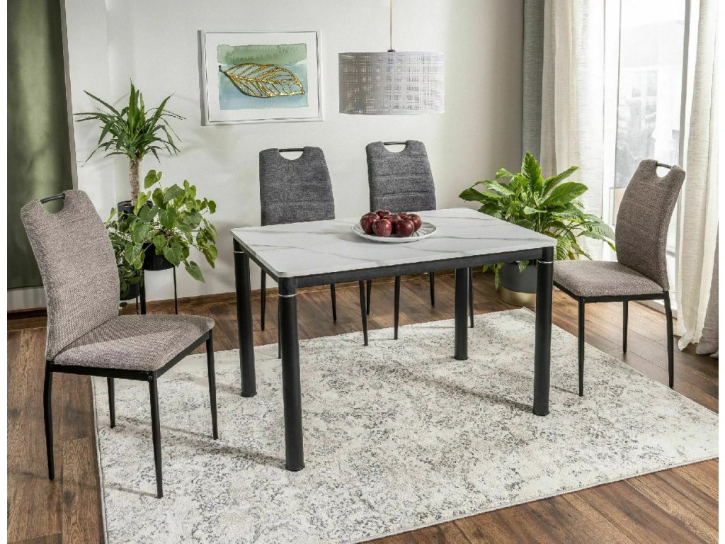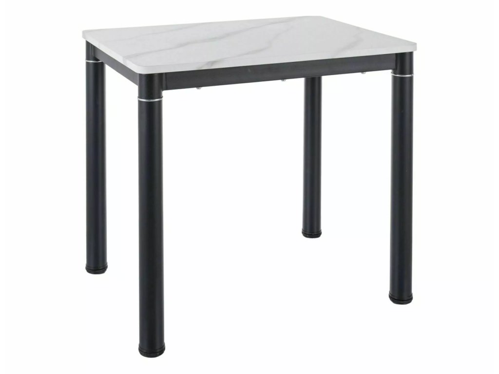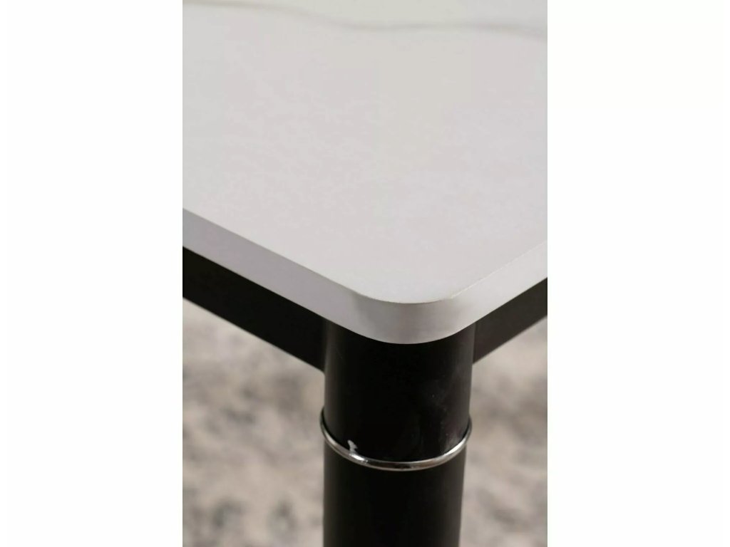 Stůl, deska: MDF + dýha, rám: kov, barva: bílý mramorový efekt / černá matná.
