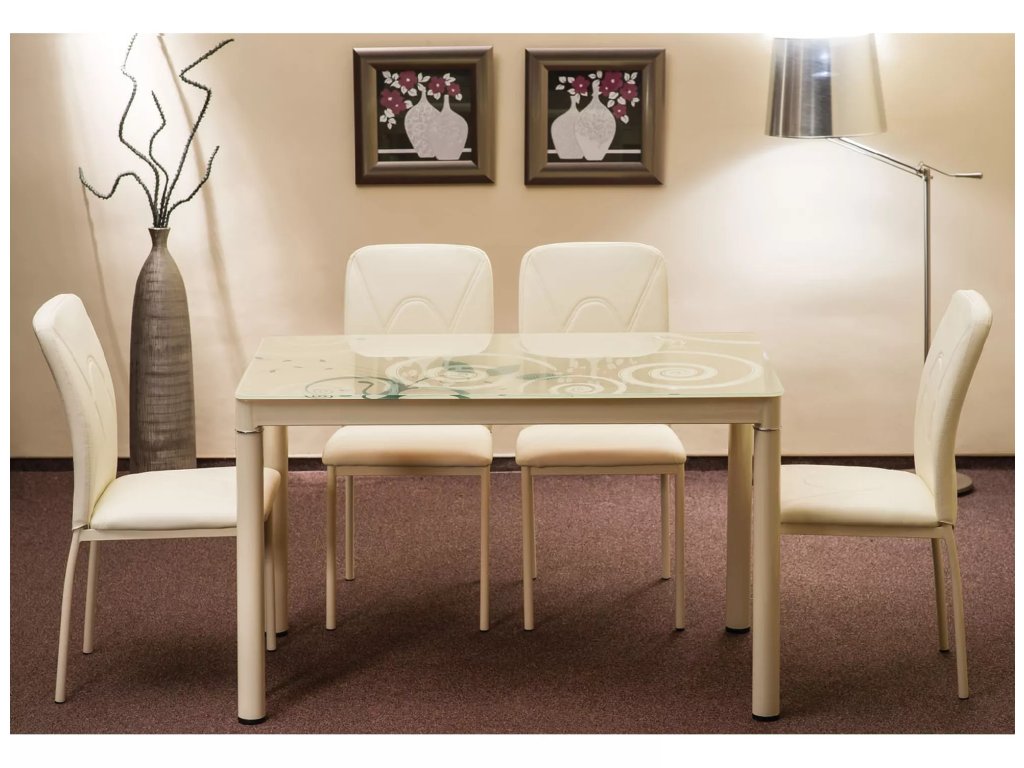 Stůl, deska: tvrzené sklo, barva: krémová / rám: lakovaný kov