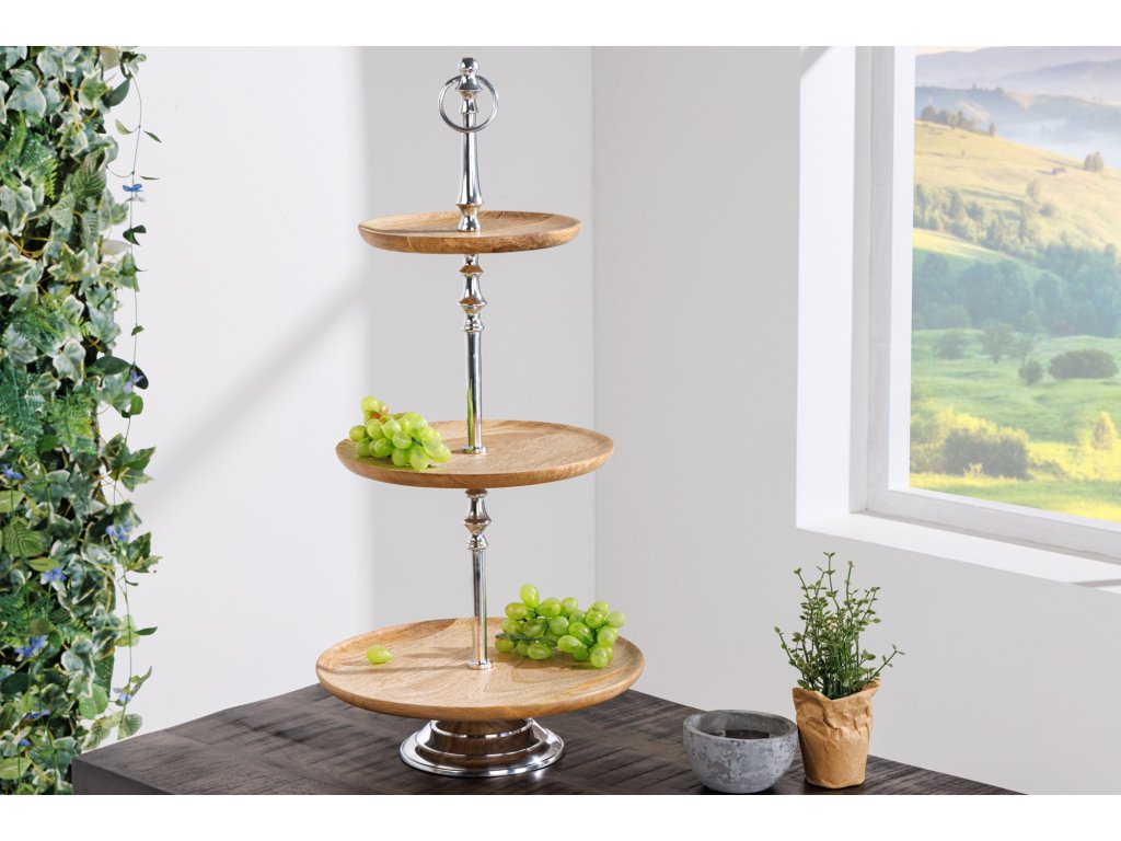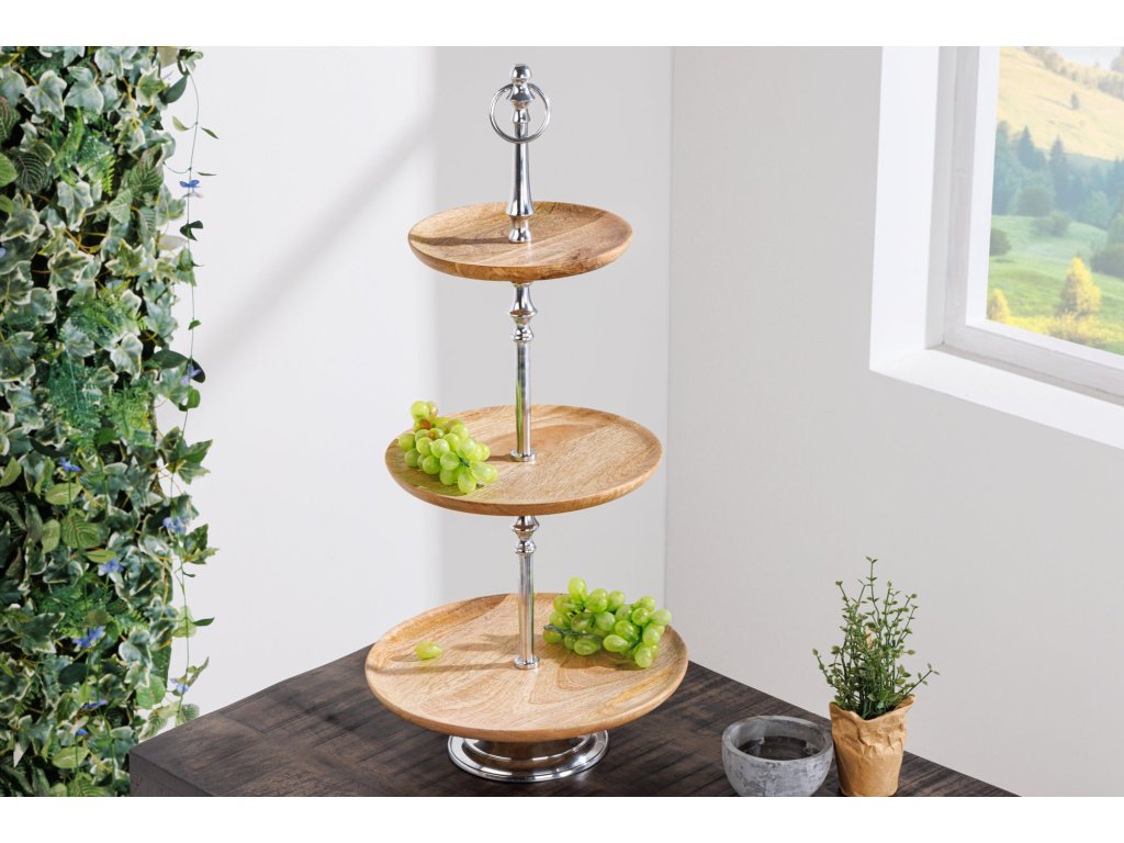 Dekorace etagere PURE NATURE 70cm 3 podnosy mangové dřevo