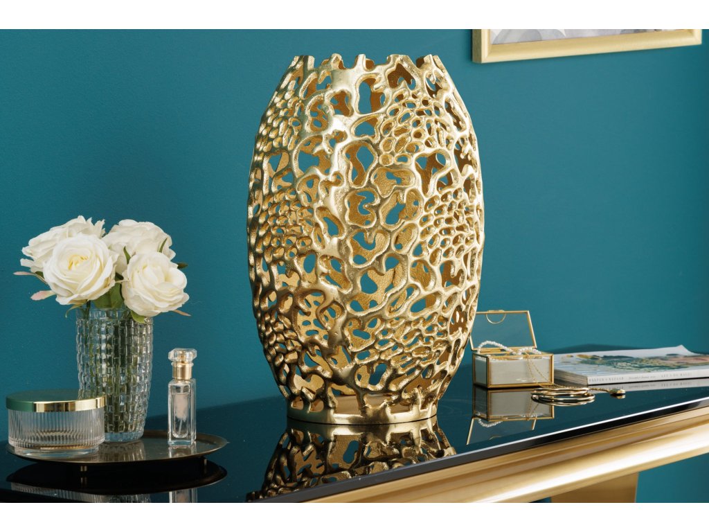 Dekorační váza ABSTRACT LEAF 40cm zlatá