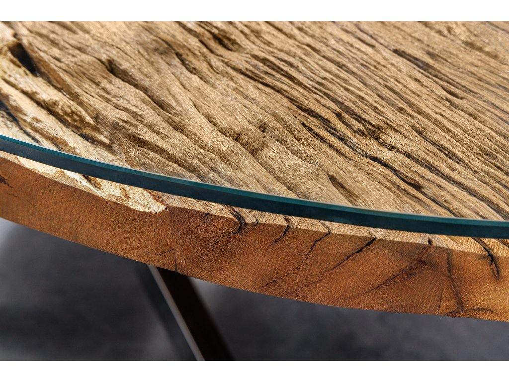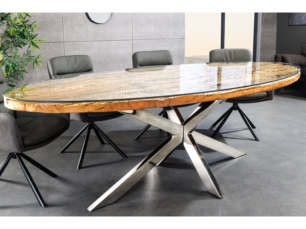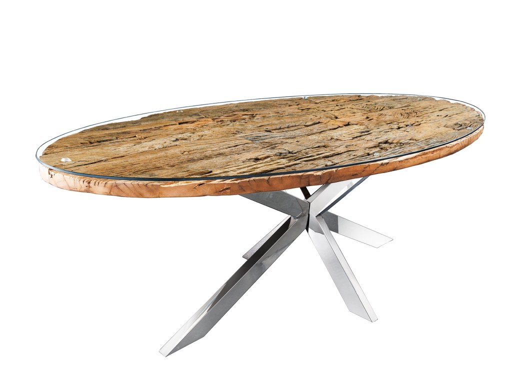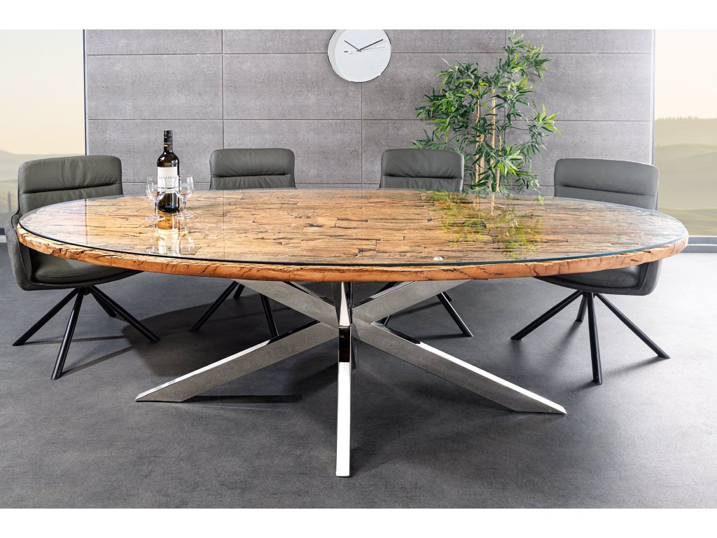 Jídelní stůl BARRACUDA 220cm oválný teakový talíř sklo oválný