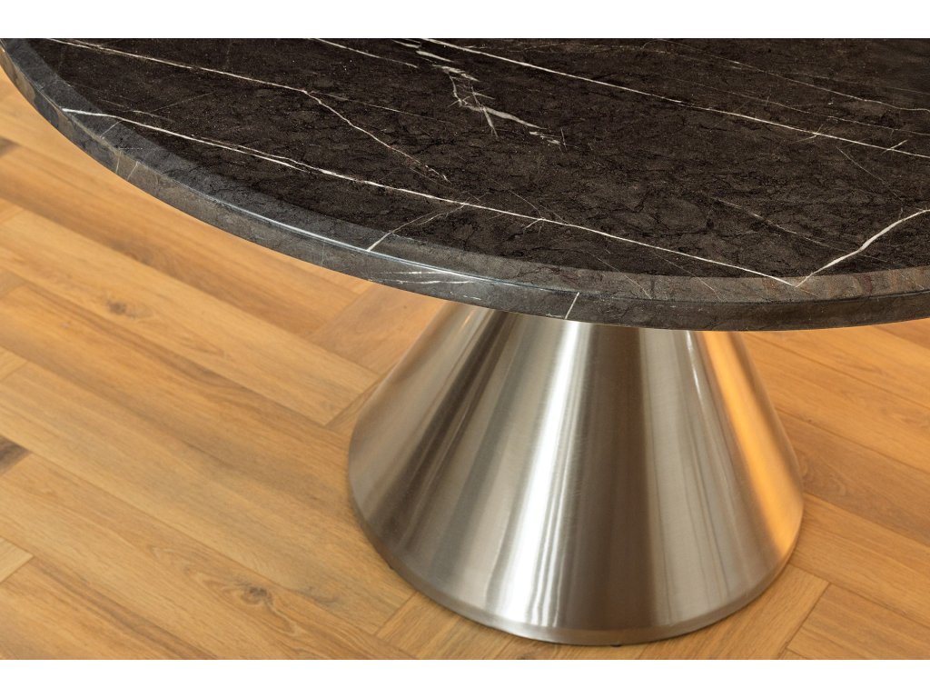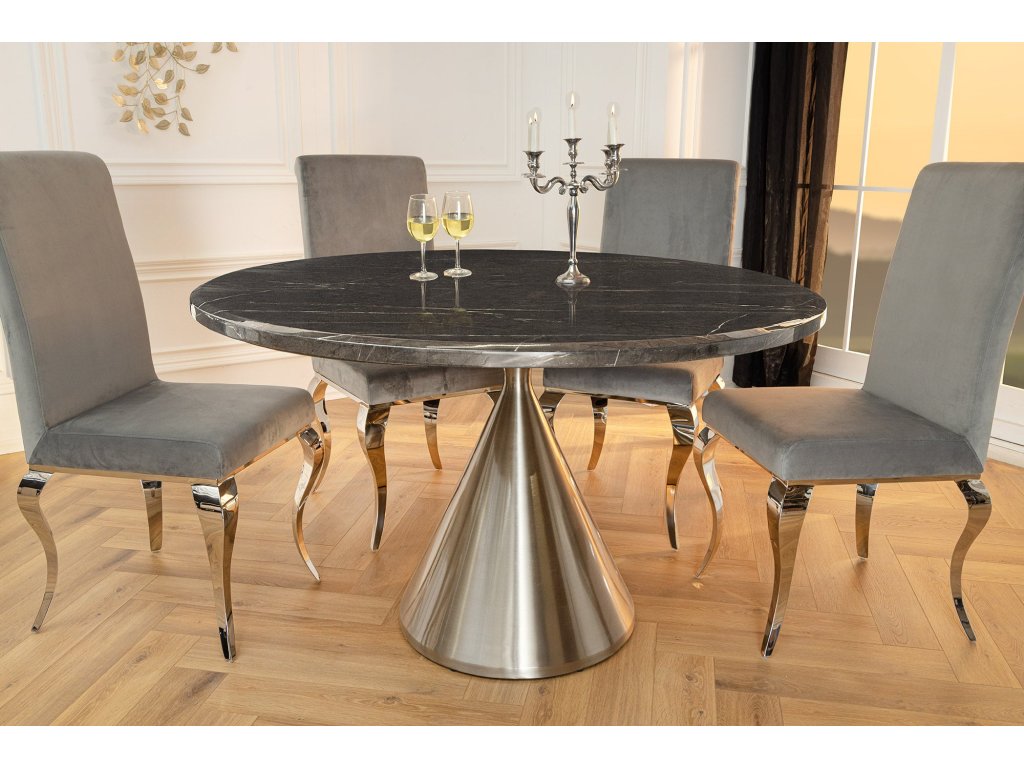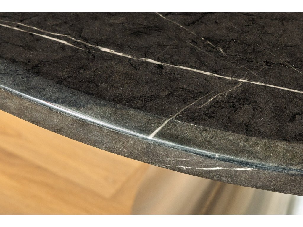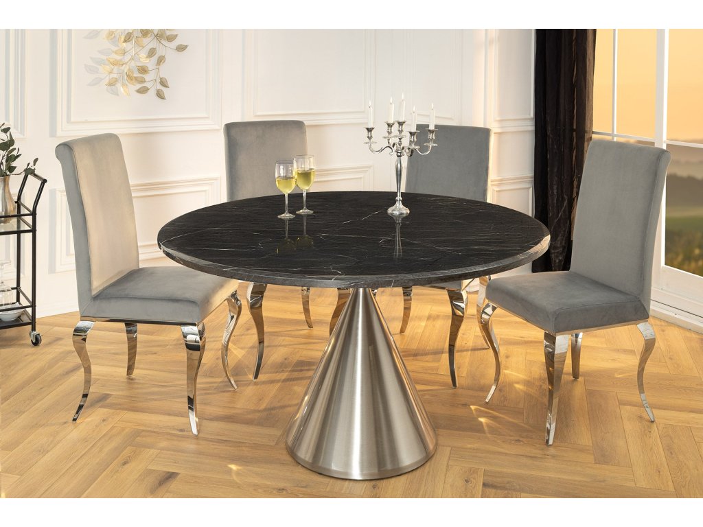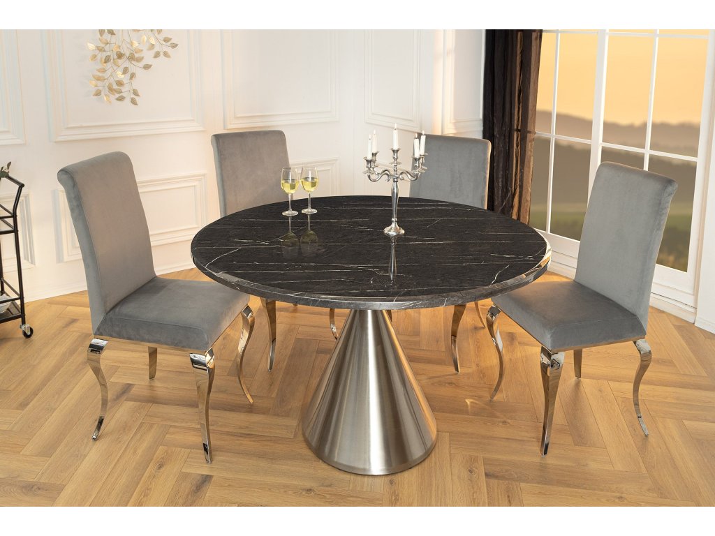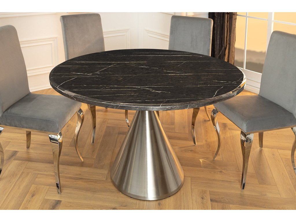 Jídelní stůl ELEGANCIA 130cm kulatý rám chrom černý mramorový vzhled