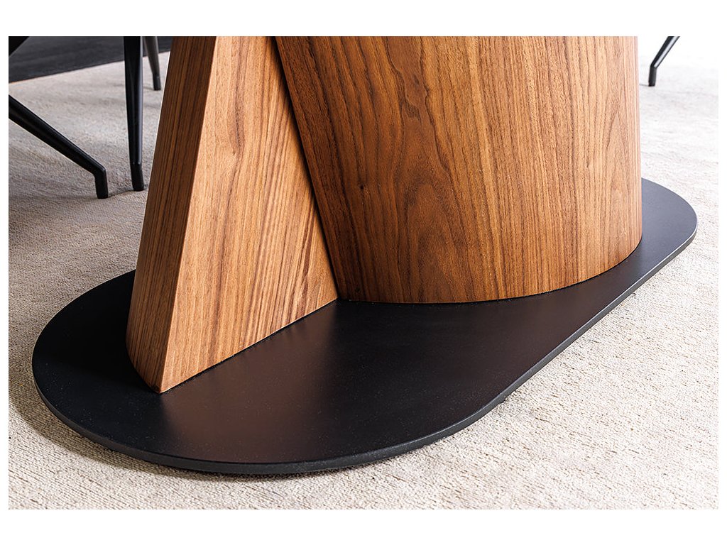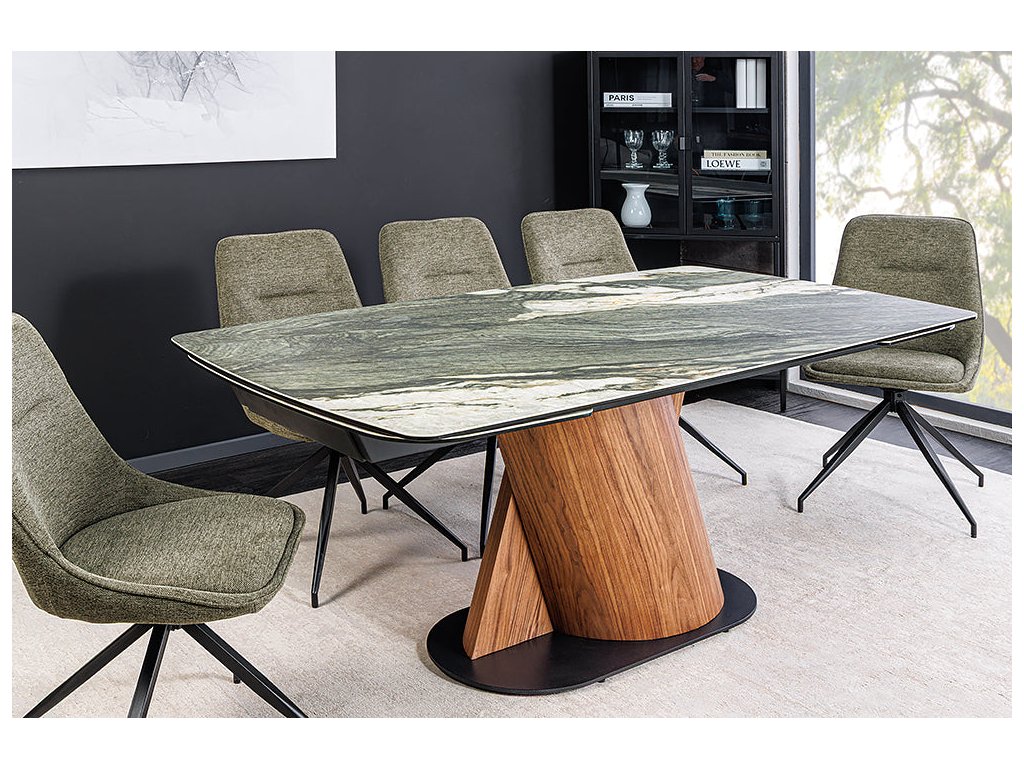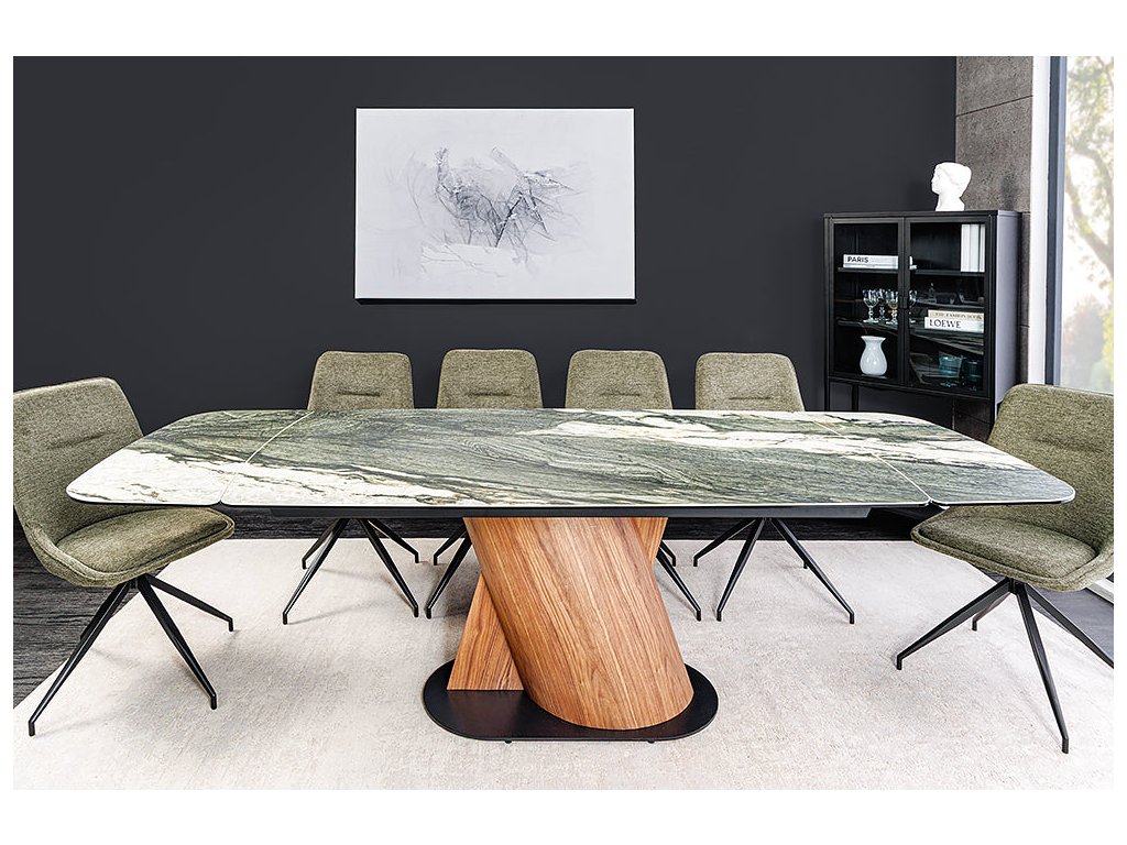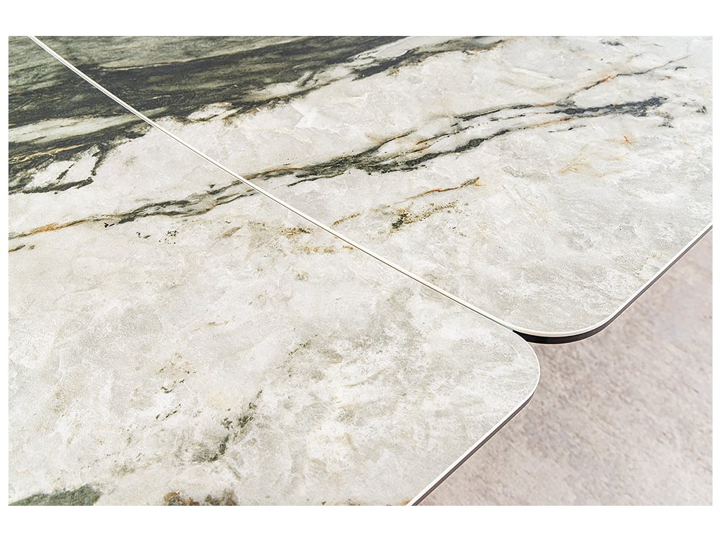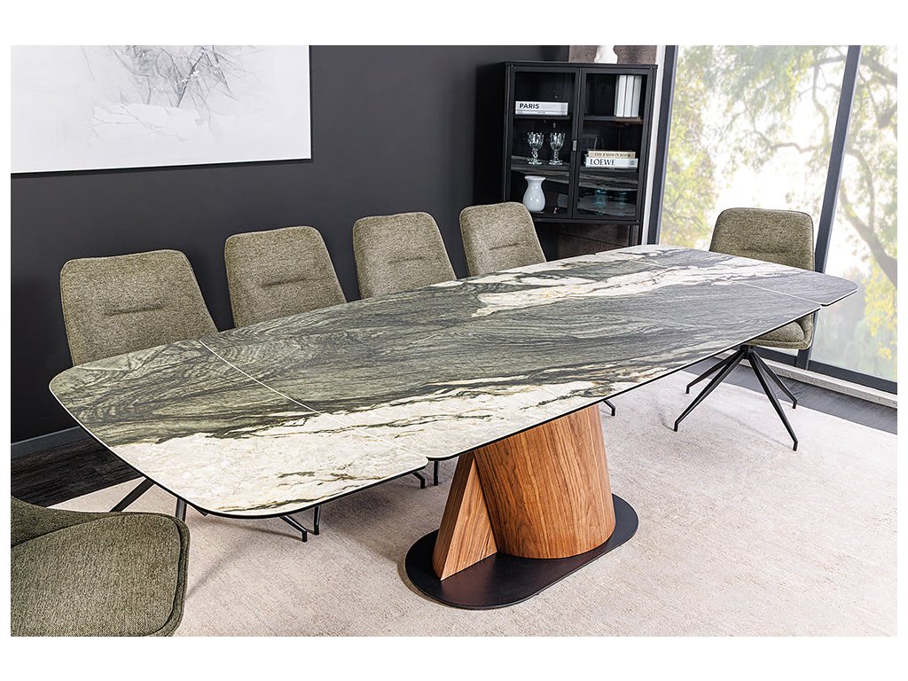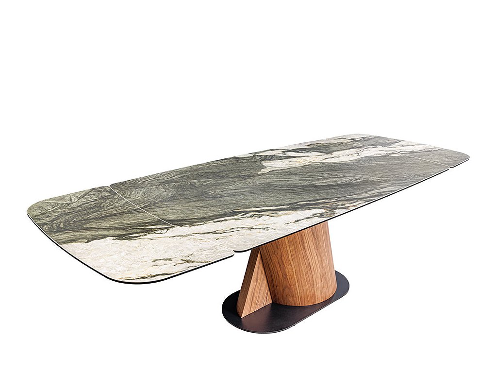 Jídelní stůl ELEMENTS 180-260 cm rozkládací ořechový rám s keramickou deskou v barvě taupe šedého mramoru