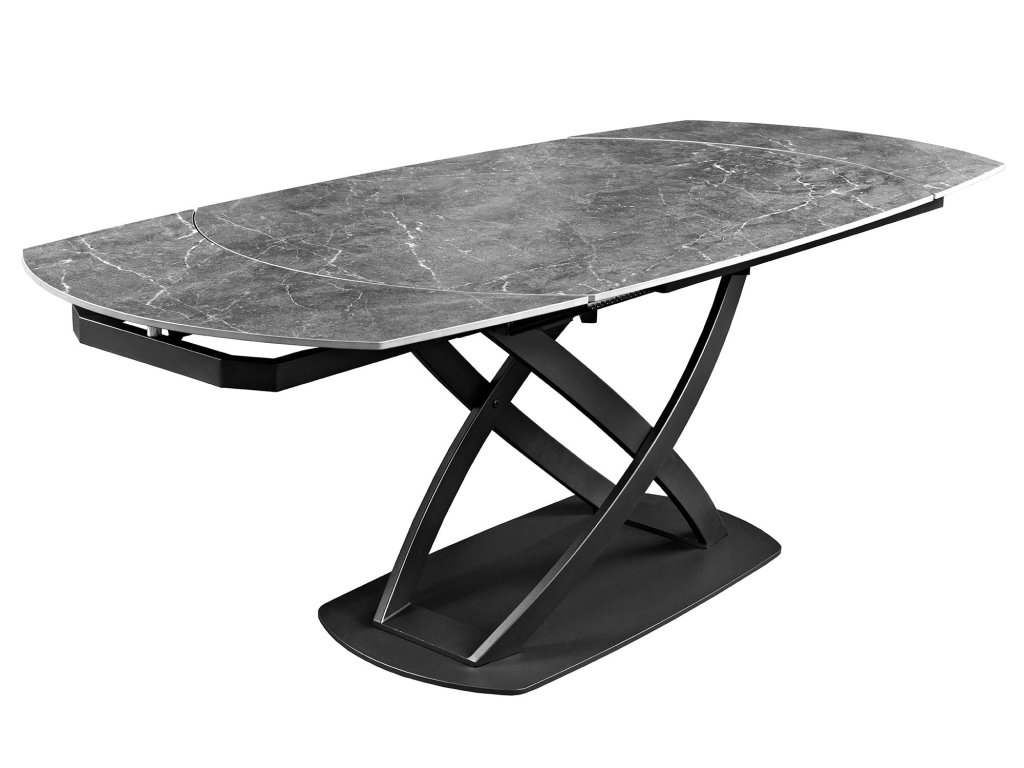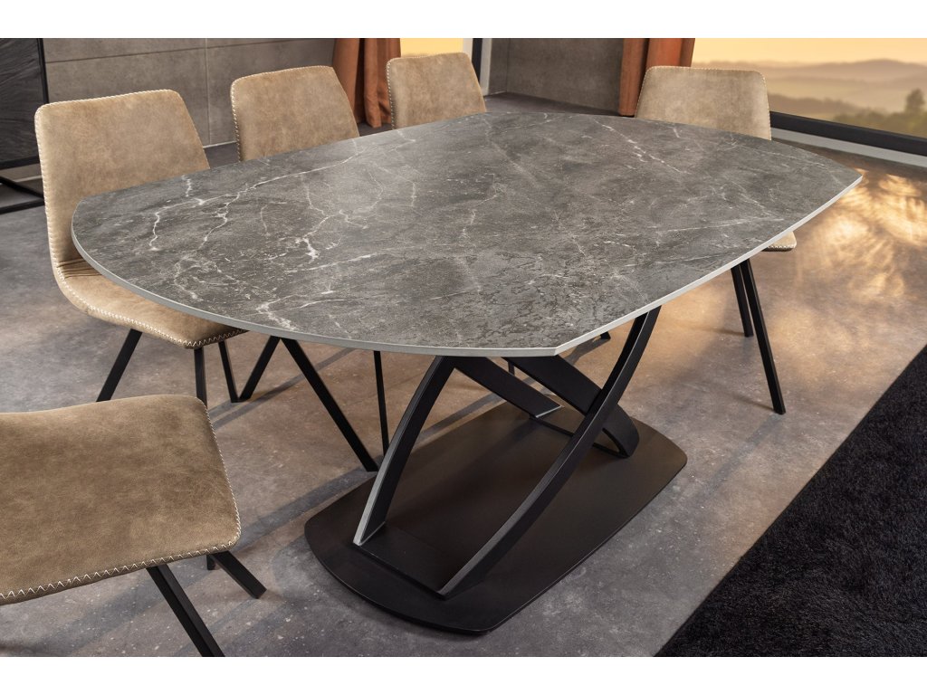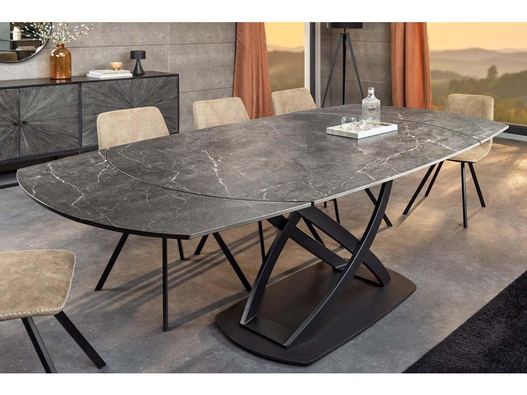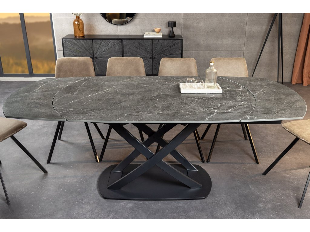 Jídelní stůl INCEPTION 130-190 cm rozkládací oválný keramický stůl s antracitovou mramorovou imitací
