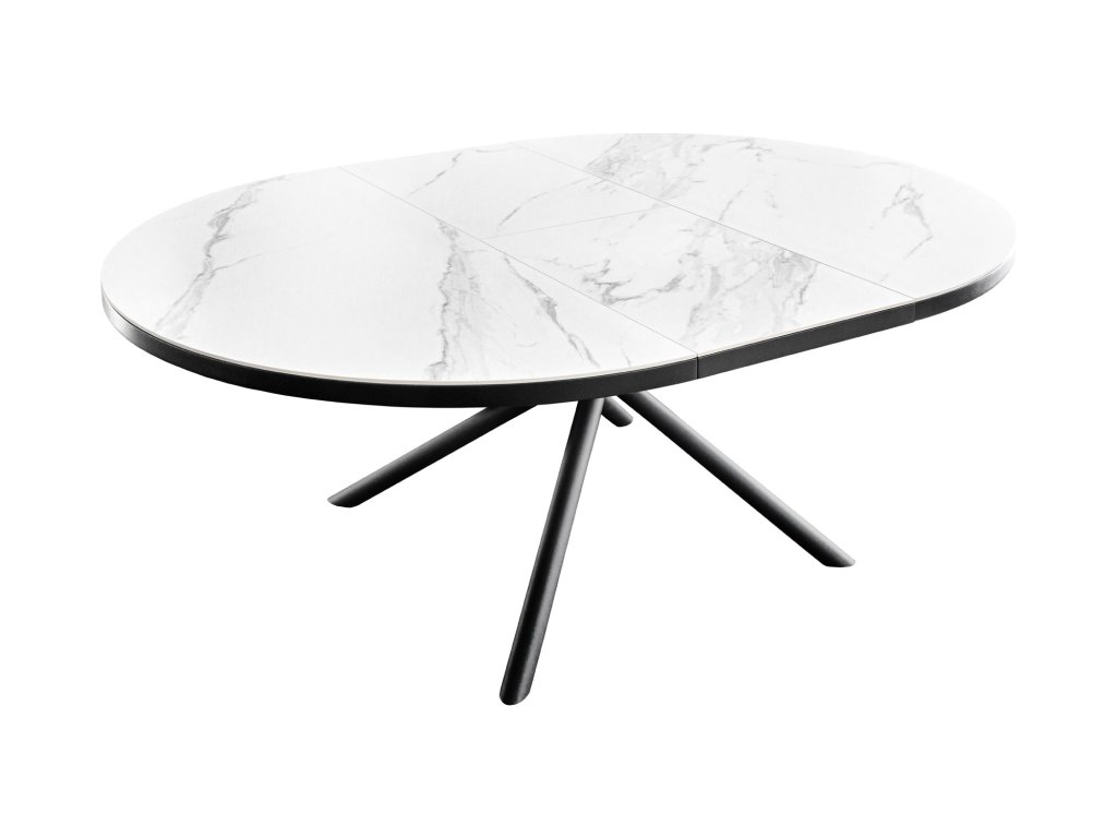 Jídelní stůl MIKADO 120-160cm kulatý rozkládací mramorový vzhled bílá keramika tvrzené sklo