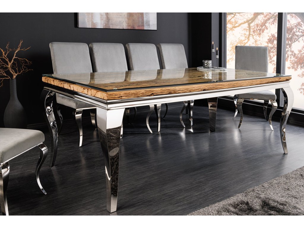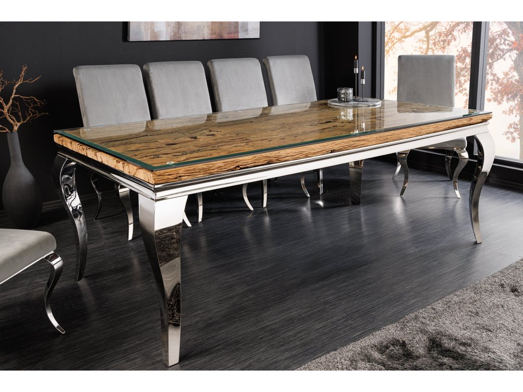 Jídelní stůl MODERN BAROCK BARRACUDA 200cm chrom vč. skleněné desky bez teakové desky