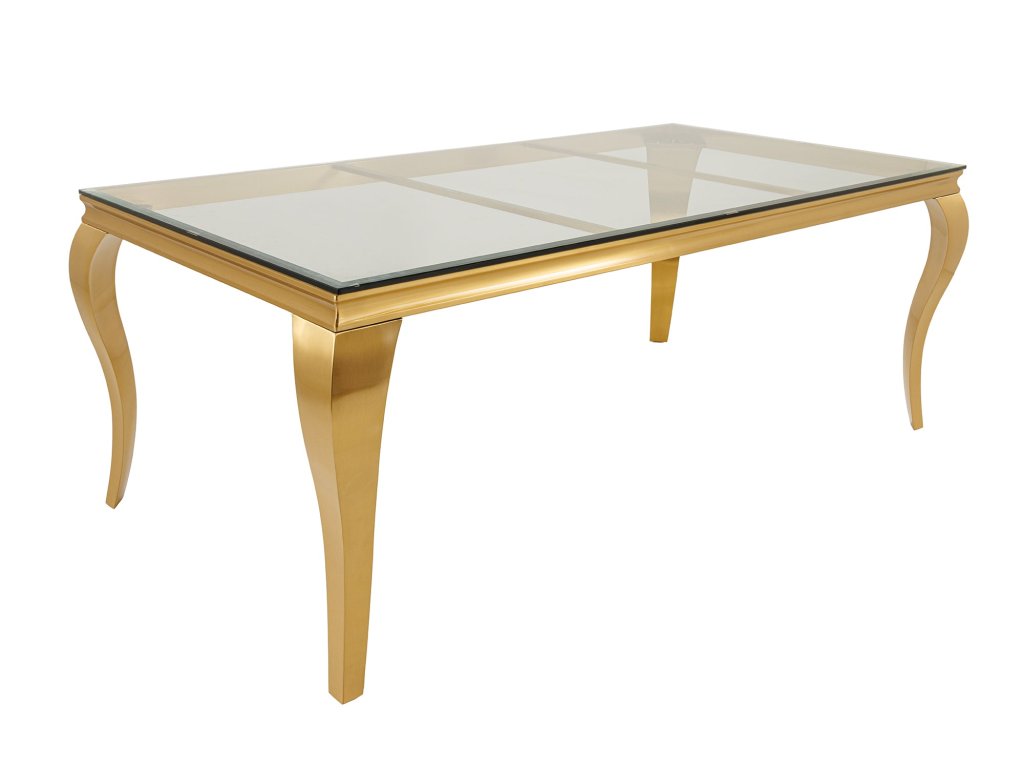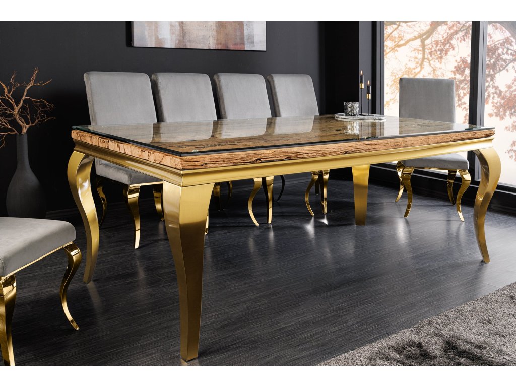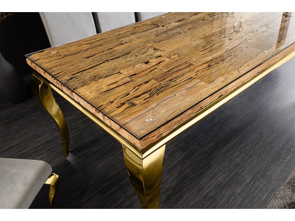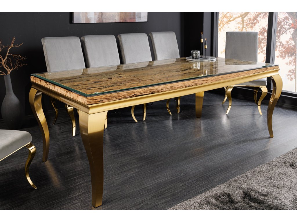 Jídelní stůl MODERN BAROCK BARRACUDA 200cm zlatý včetně skleněné desky bez teakové desky