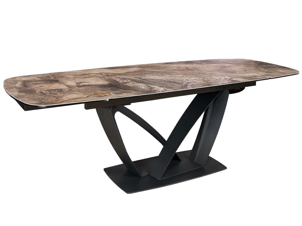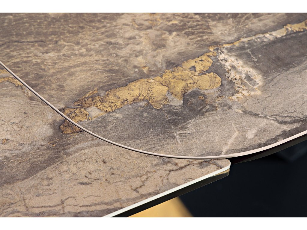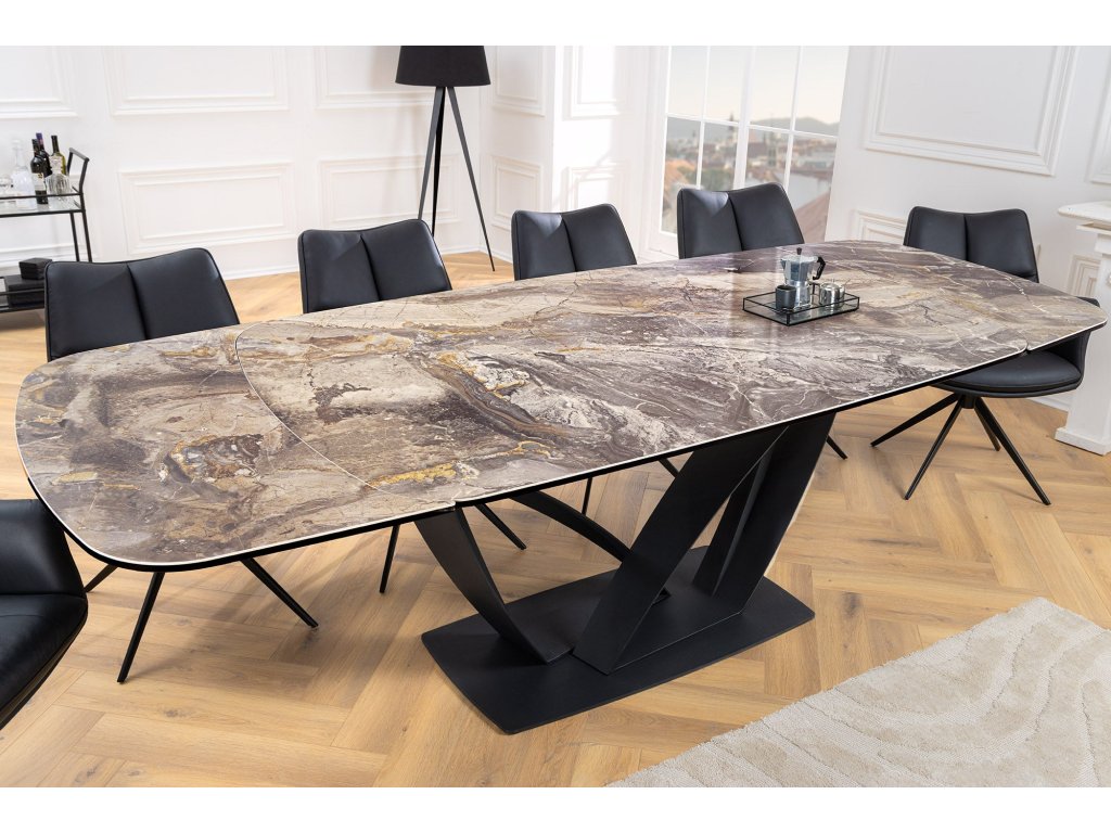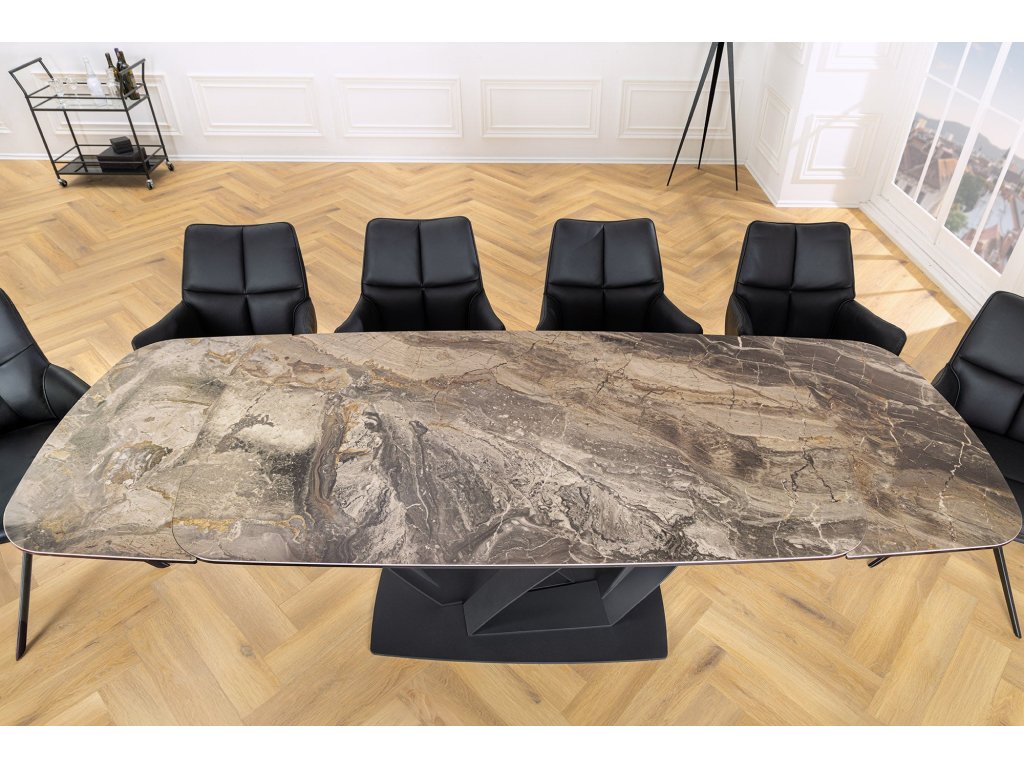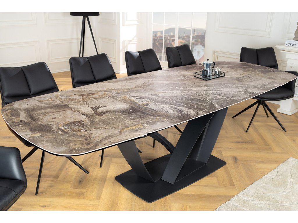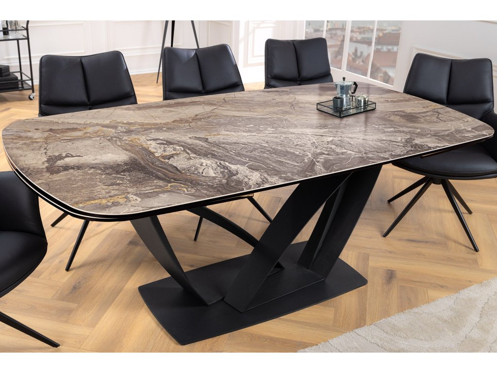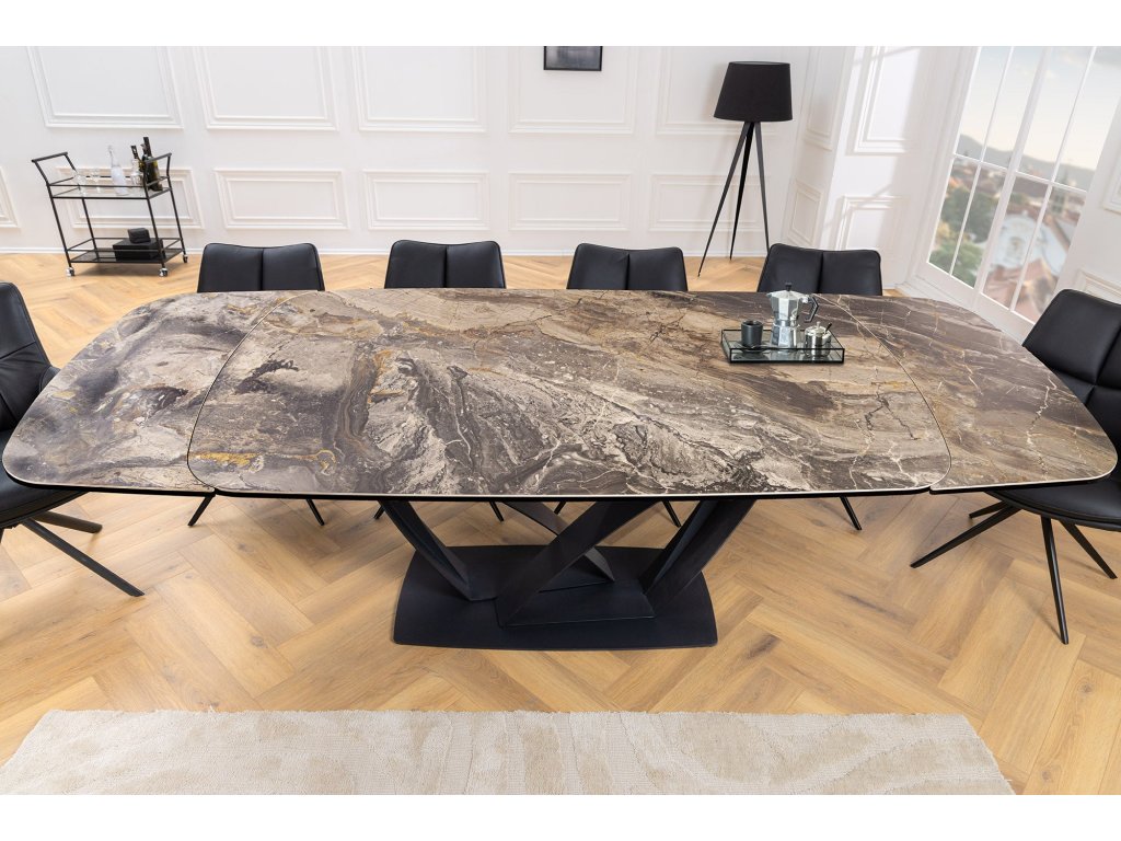 Jídelní stůl PAPILLON 180-220-260cm keramický mramorový vzhled taupe a tvrzené sklo