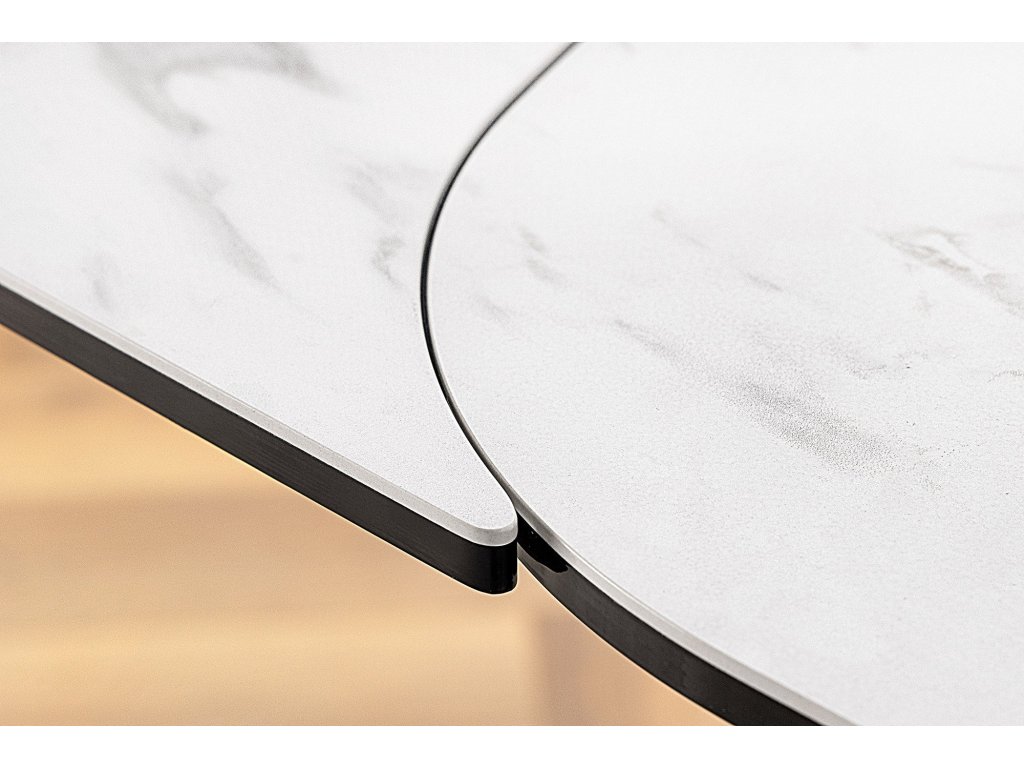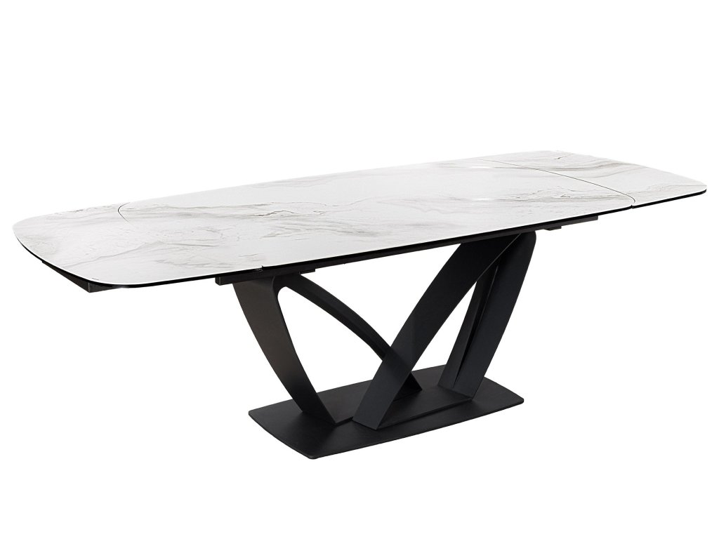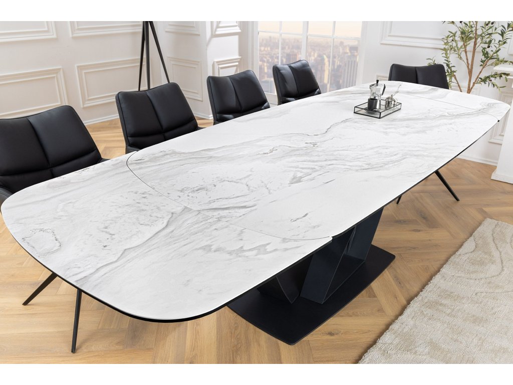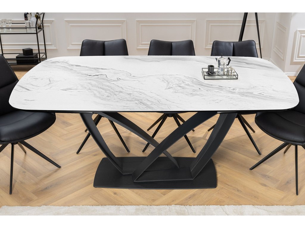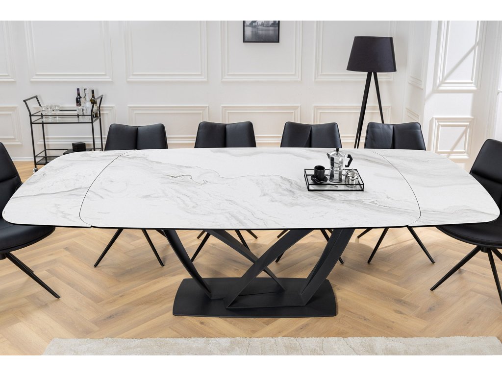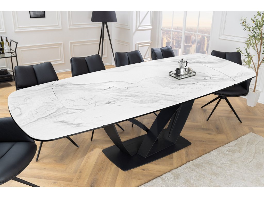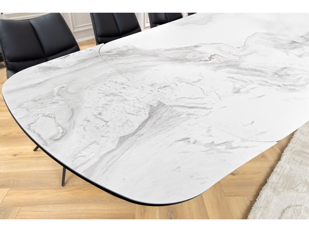 Jídelní stůl PAPILLON 180-220-260cm keramický mramorový vzhled bílý a tvrzené sklo
