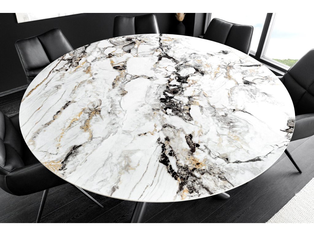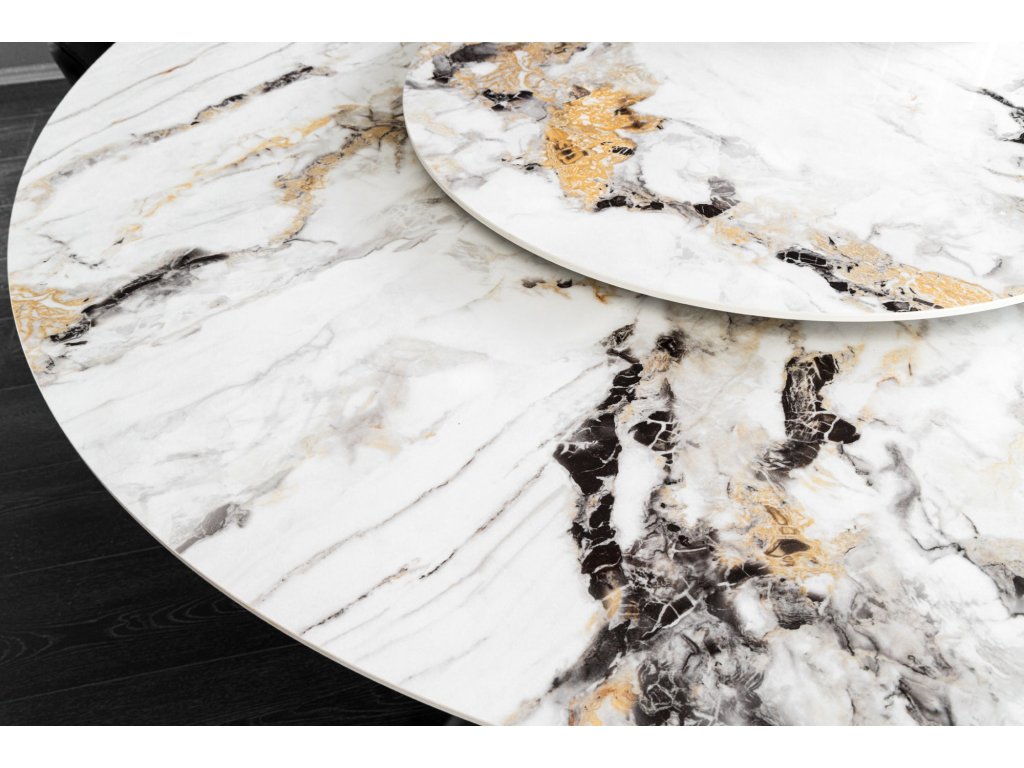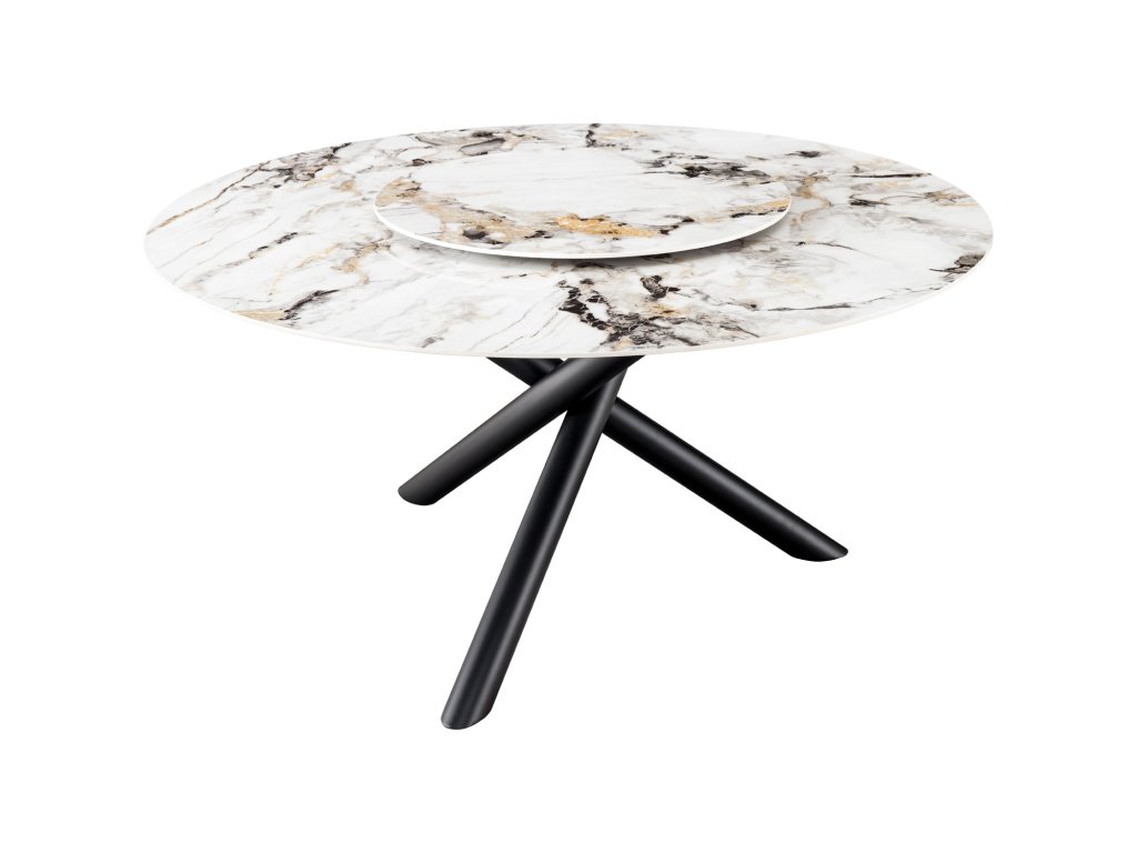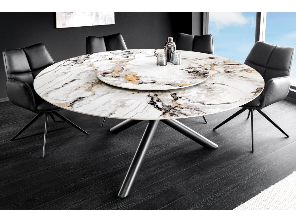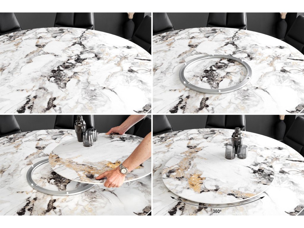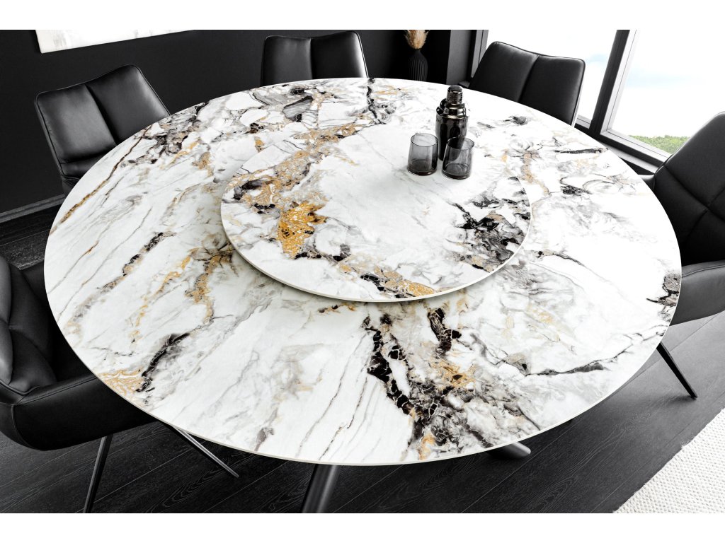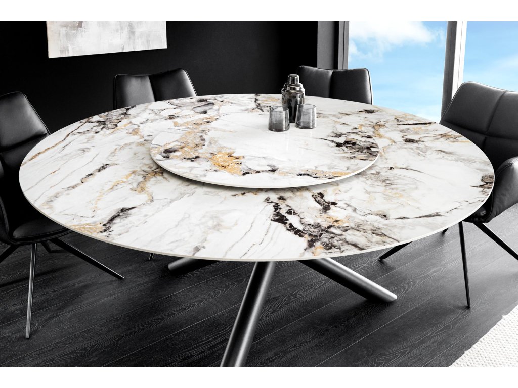 Jídelní stůl SPIN Ø 150 cm otočný s odnímatelným podnosem, keramický, mramorový vzhled, bílý, vícebarevný