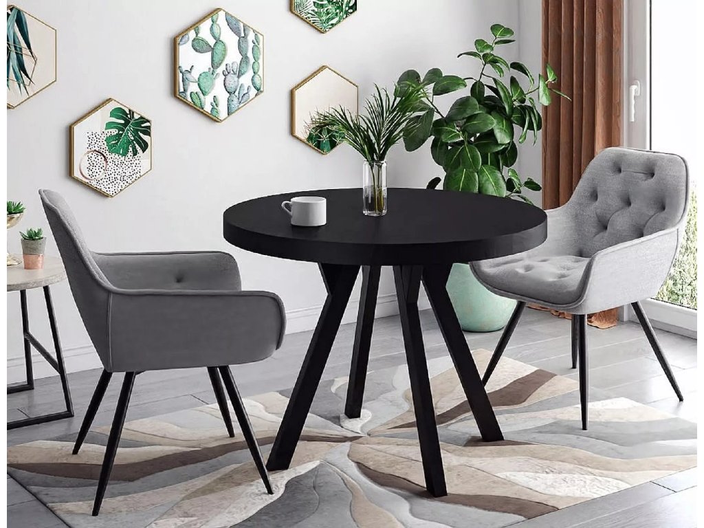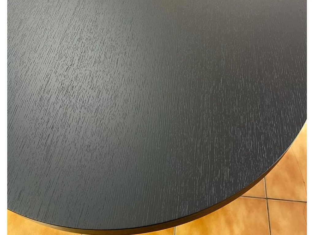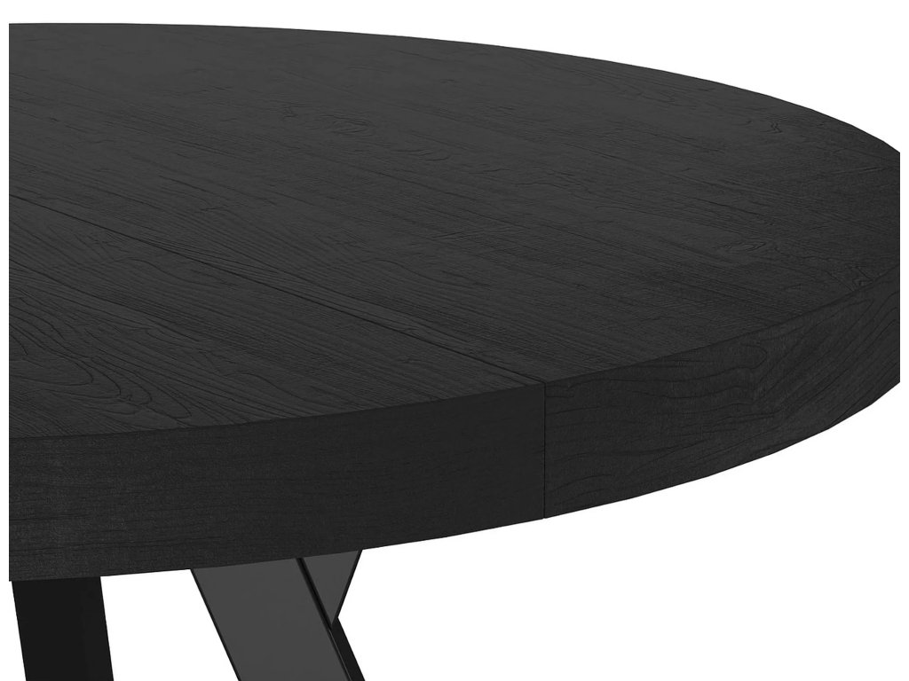 Rozkládací stůl, deska: přírodní dýha, rám: kov, barva: černá/černá. Kulatý stůl se třemi dalšími vložkami/vrchy po 50 cm = nastavitelná délka stolu: 100, 150, 200 nebo 250 cm. Tloušťka dýhy: 0,6 mm. Poznámka: Vložky jsou uloženy odděleně (pod deskou není vyhrazený prostor).