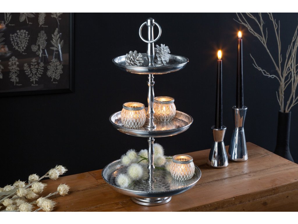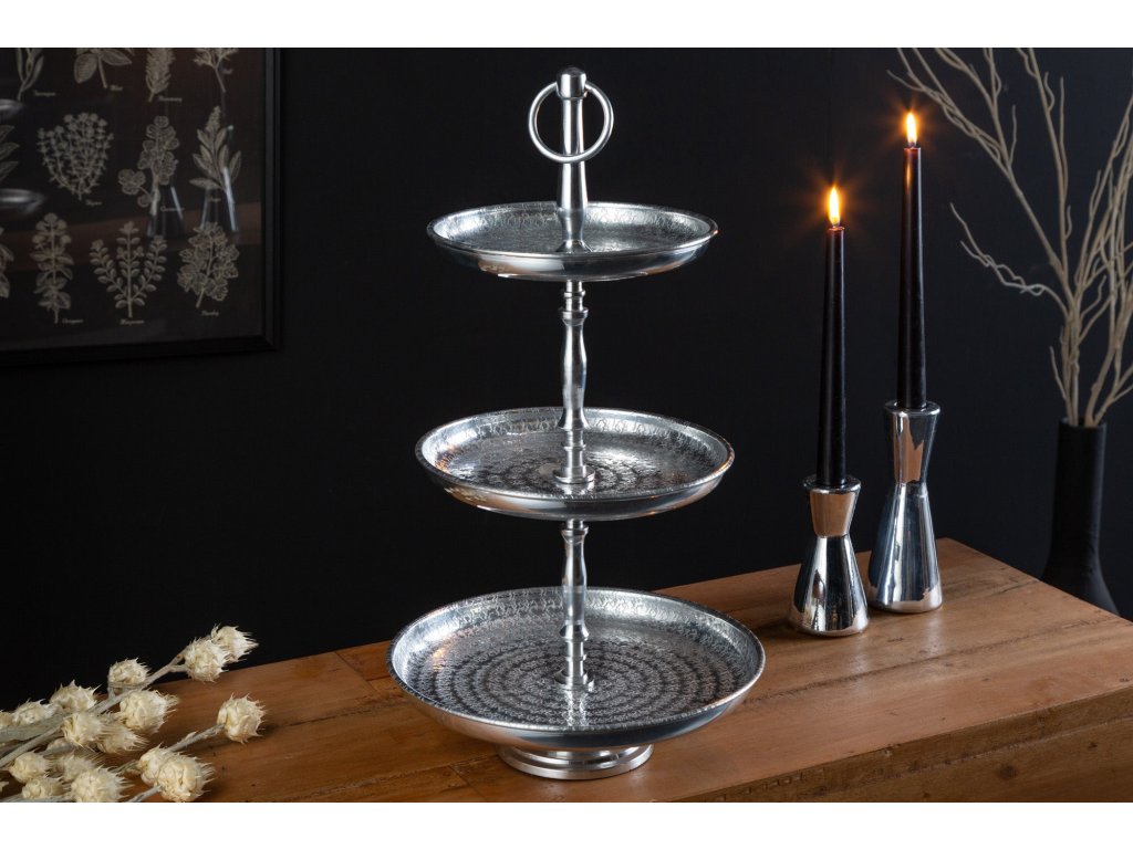 Etagere ORIENT 50cm 3 podnosy s efektem kladívka stříbrná