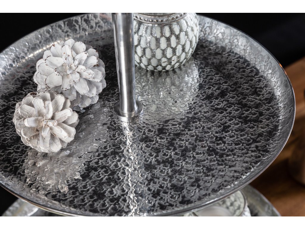Etagere ORIENT 65cm 3 podnosy s efektem kladívka stříbrná