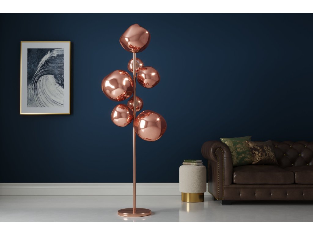 Stojací lampa LIQUID DIAMOND 170 cm 7 skleněných stínidel ocelový rám měděný