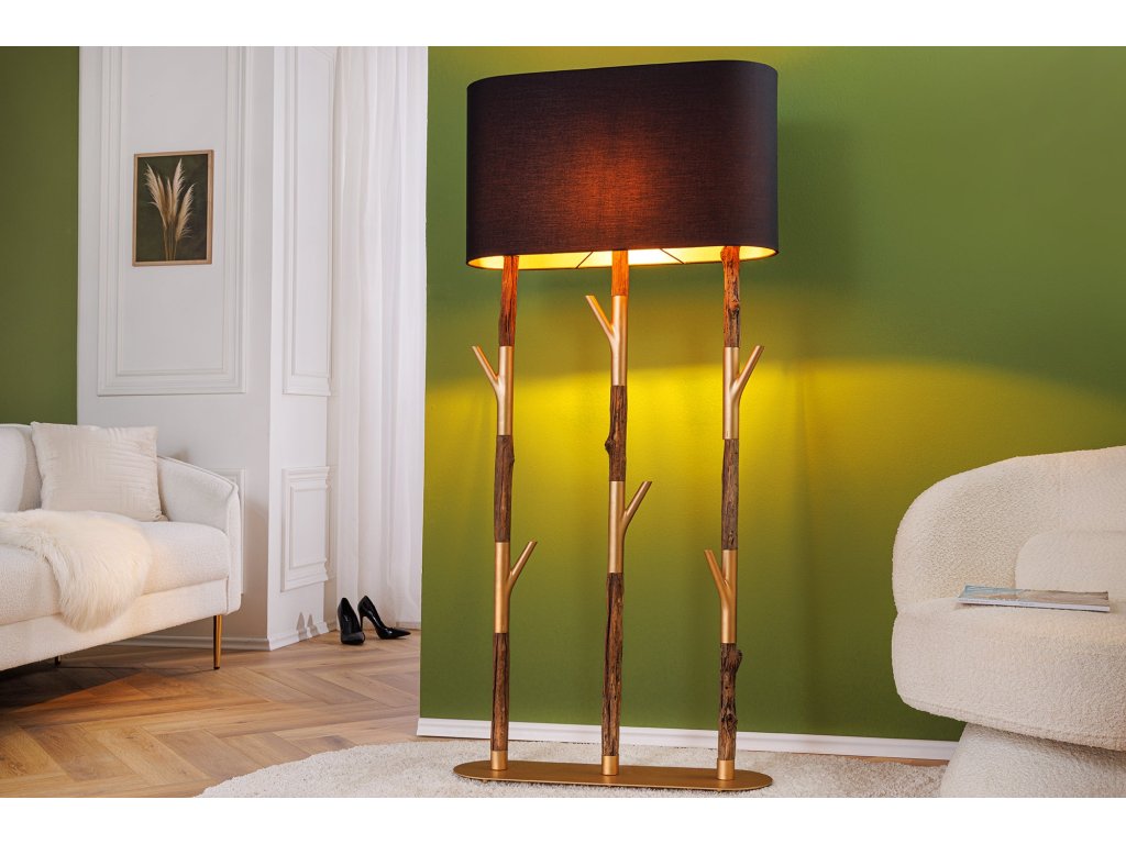 Stojací lampa WARDOBE 150cm s pevným rámem, přírodní zlatá, s černo-zlatým stínidlem