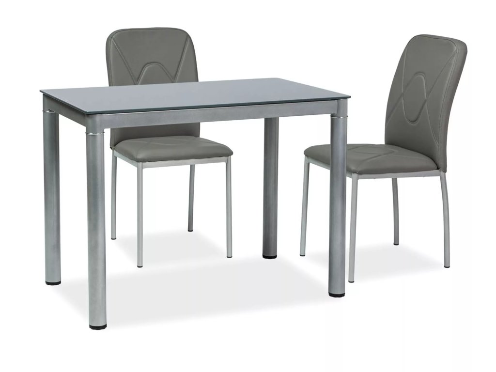 Stůl, deska: tvrzené sklo, barva: šedá / rám: lakovaný kov, barva: šedá.