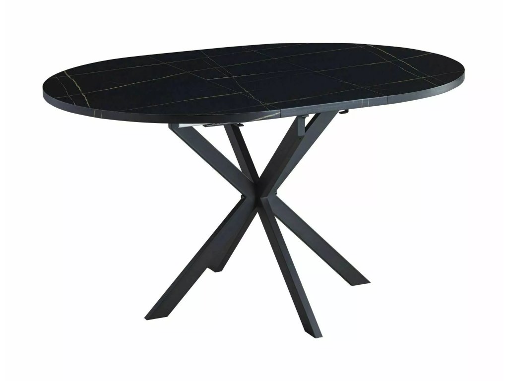 Rozkládací stůl, deska: MDF + dýha, rám: kov, barva: černý mramorový efekt / černá.Doplňkové parametry