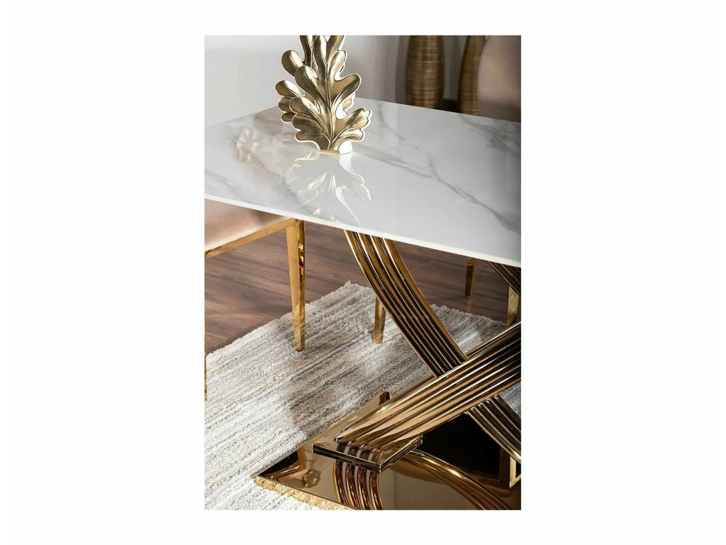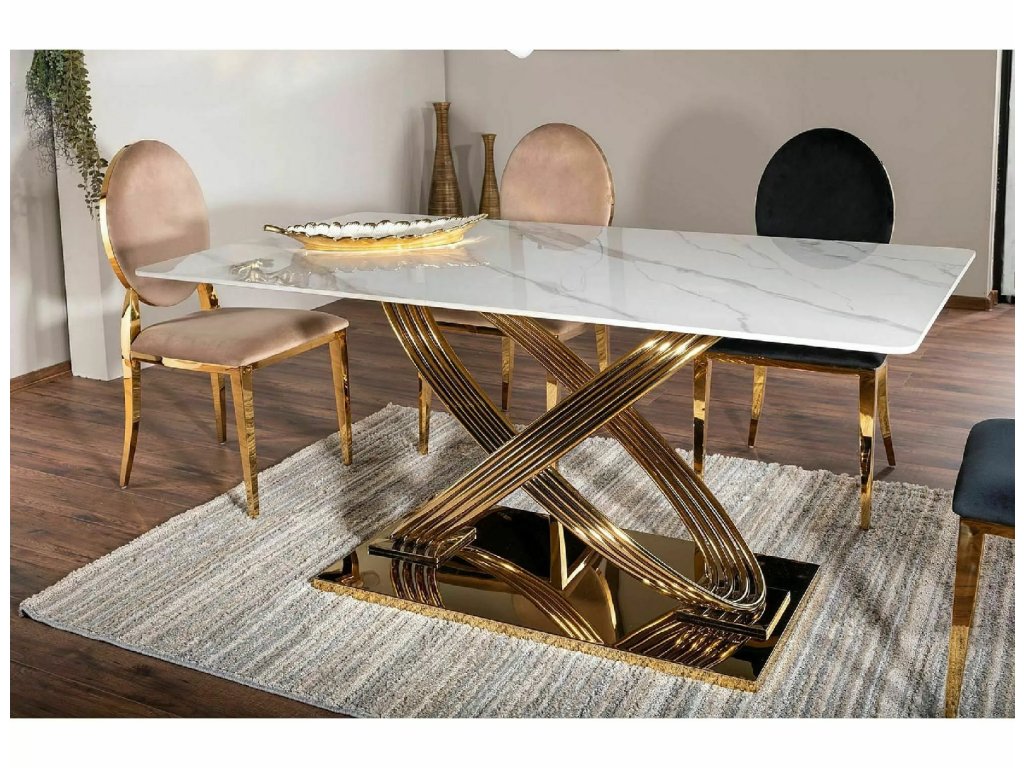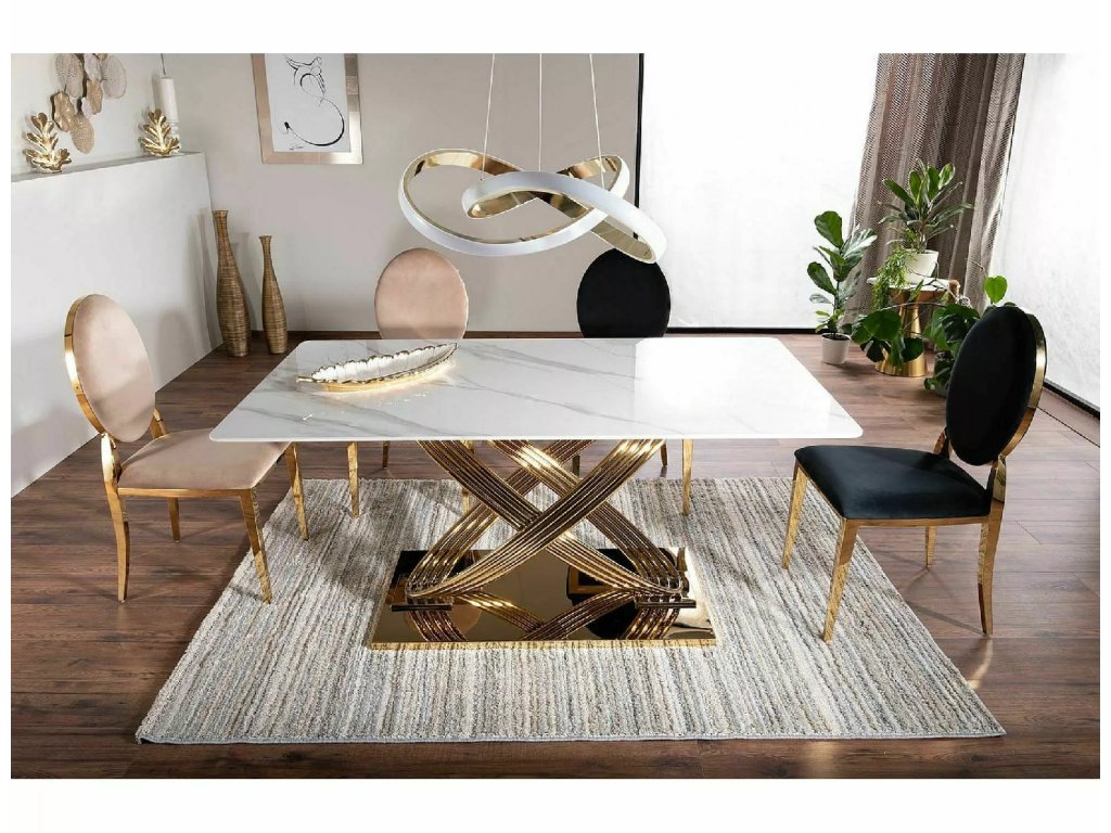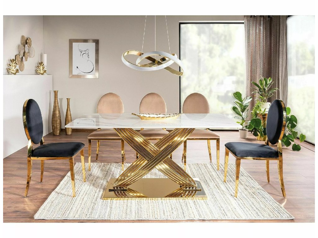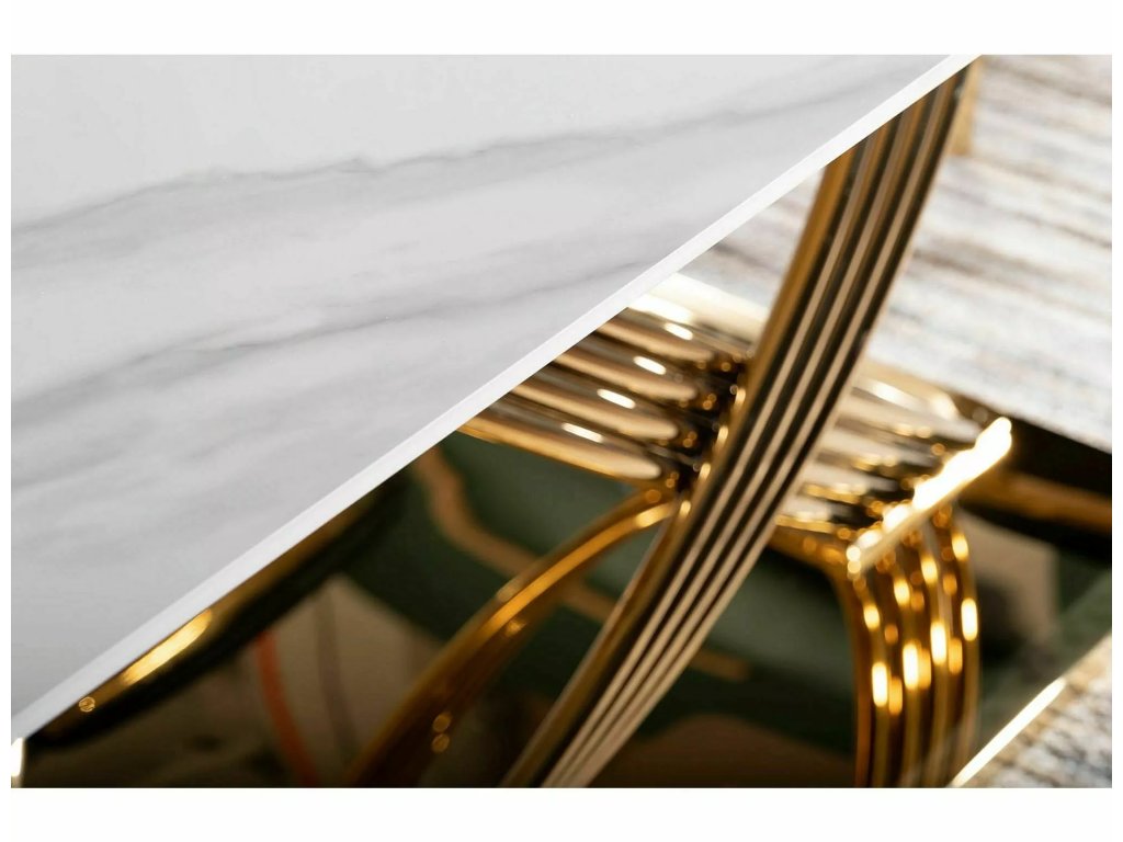 Stůl, deska: keramika, mramorový efekt, rám: nerezová ocel, barva: bílá / zlatá.