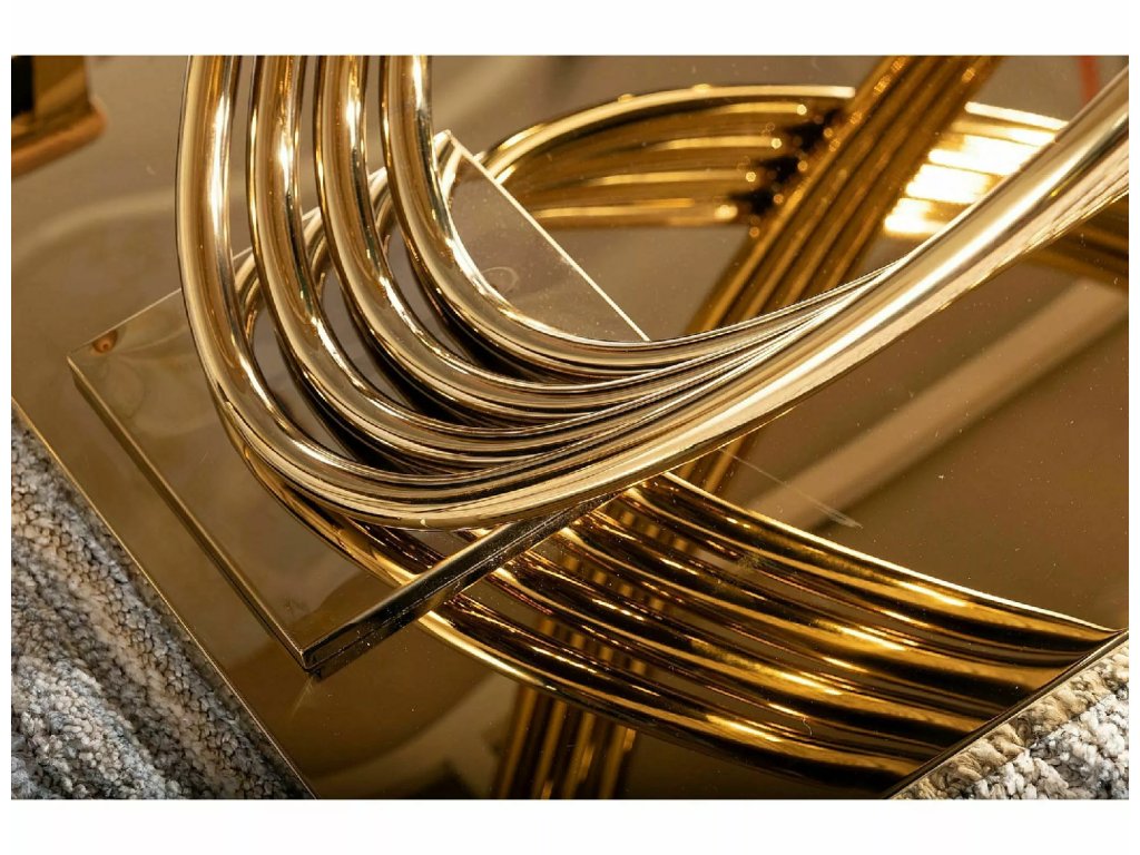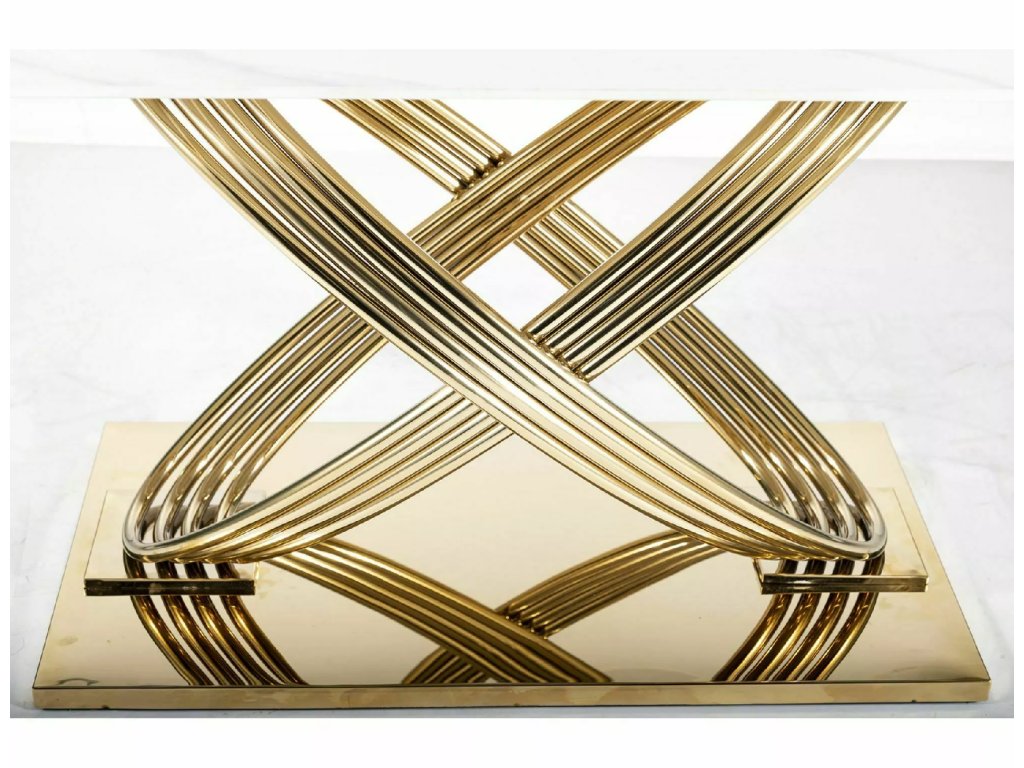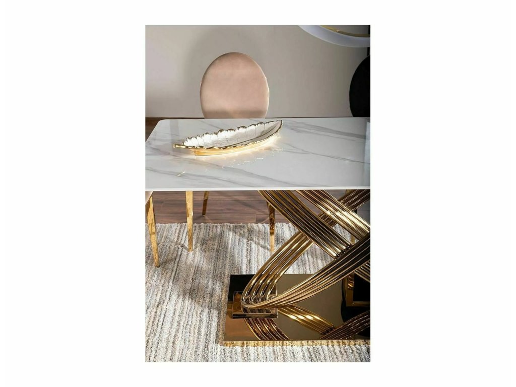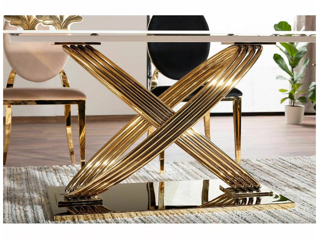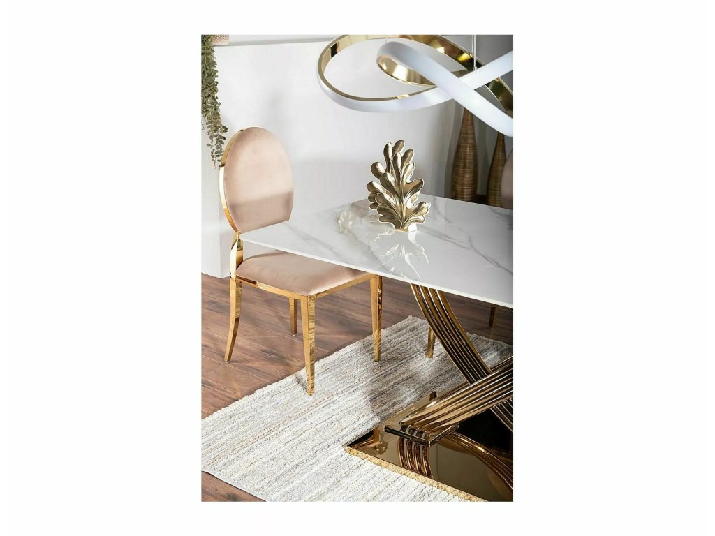 Stůl, deska: keramika, mramorový efekt, rám: nerezová ocel, barva: bílá / zlatá.