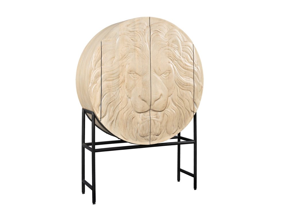 Highboard LION 140cm 3D mangovníkové dřevo bílý rám černý