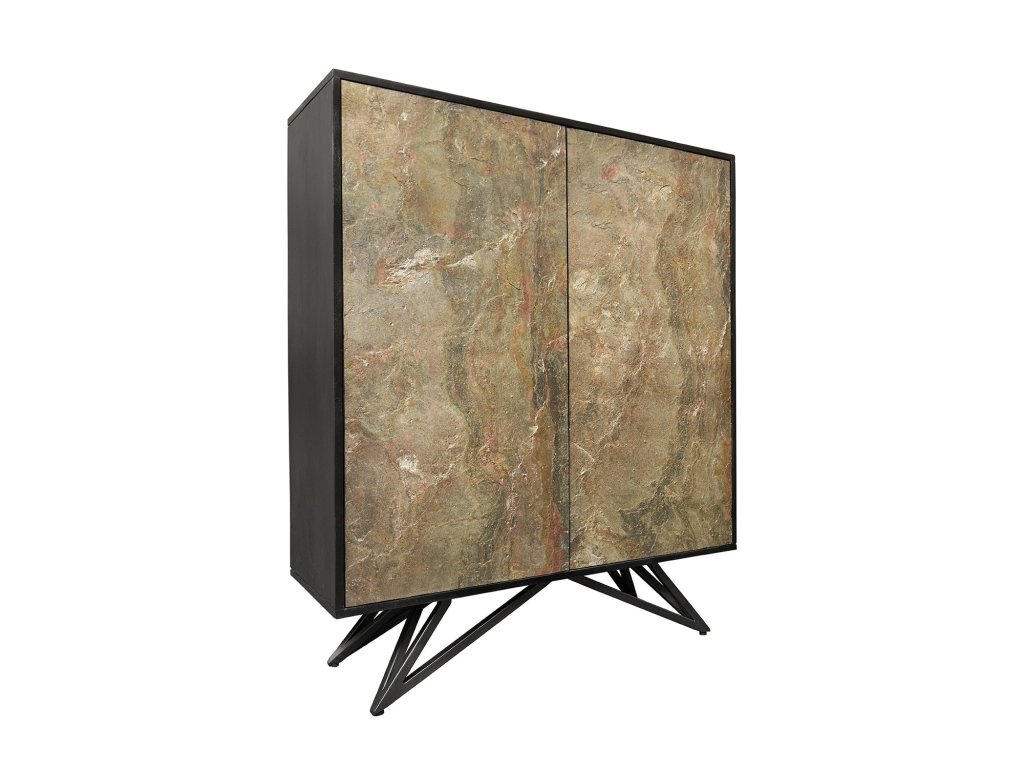 Highboard MONTAIN SOUL 120cm akáciový přírodní kámen vzhled černá přírodní
